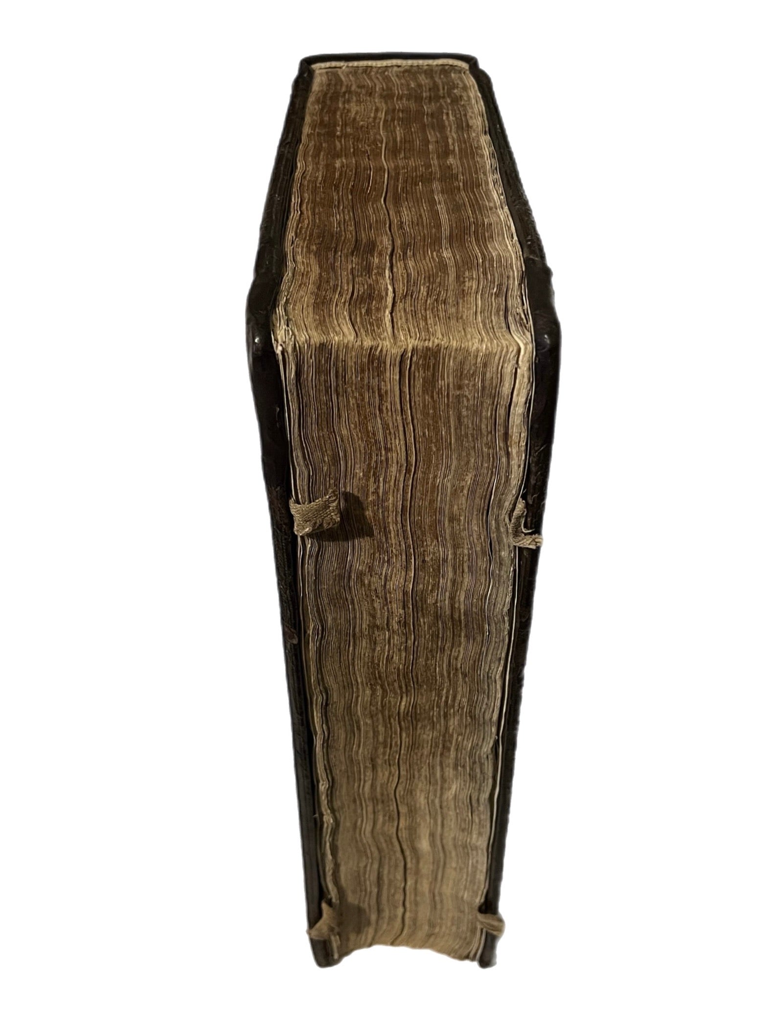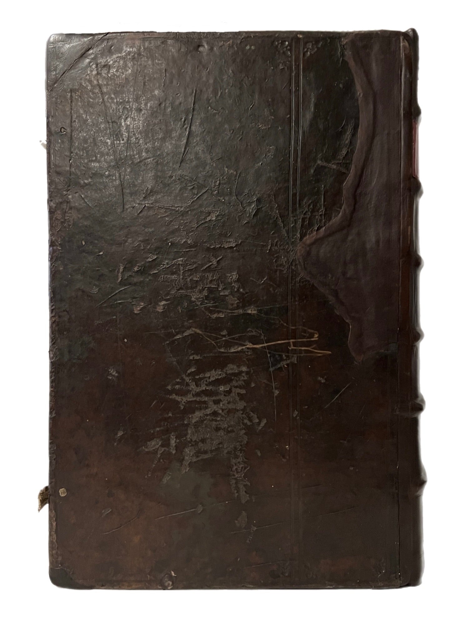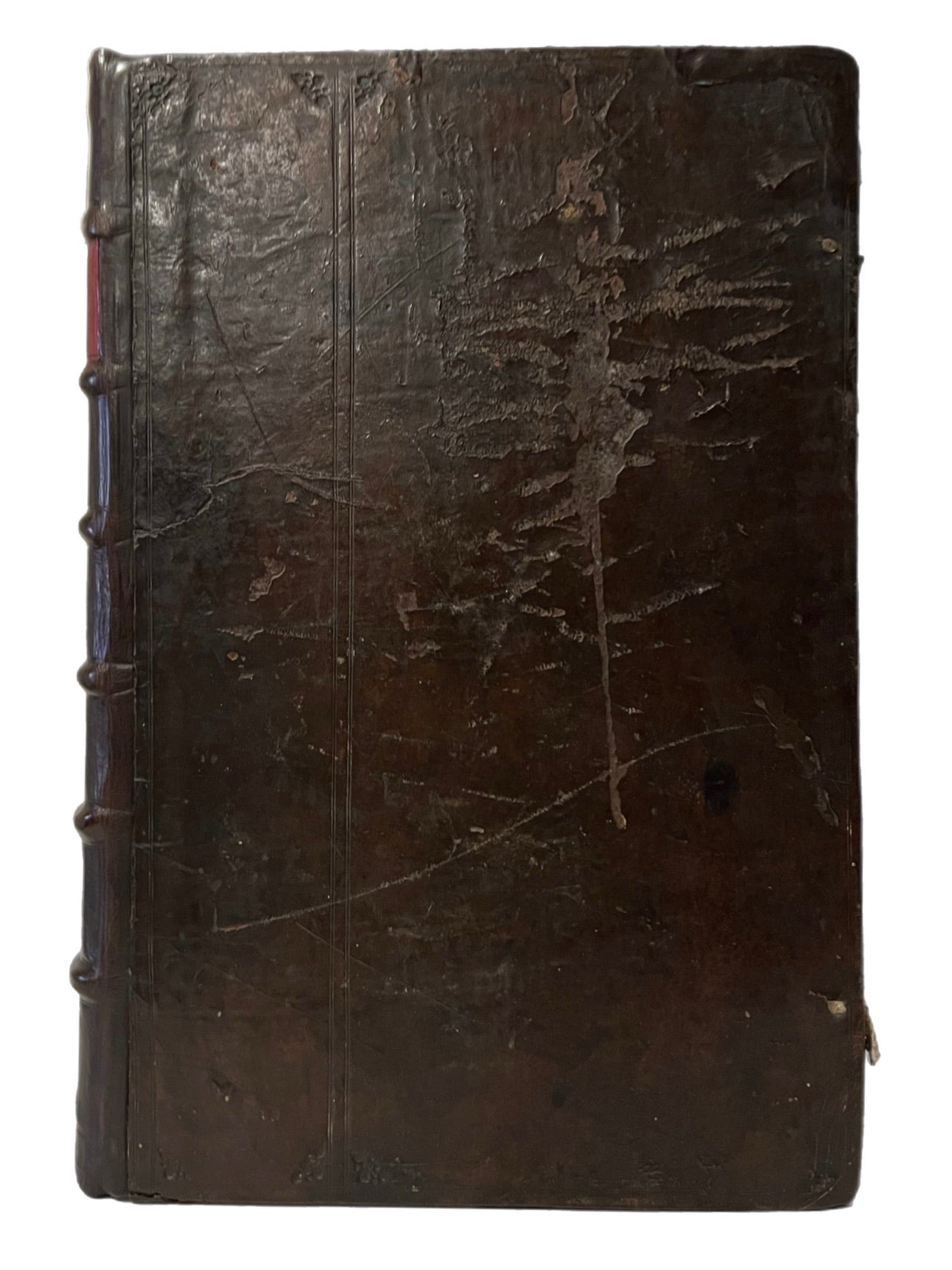 Contemporary full calf, the boards decorated in blind, rubbed, with some scuffs. Rebacked circa 2010 with a very attractive backstrip, showing very nicely on the shelf indeed, similar restoration to board corners. Both boards are securely attached, the binding is secure, and stands without shelf lean. The binding is not overly tight and functions very well as a book should, without issue. An excellent binding, benefitting from contemporary 17th century boards, as well as the practicality of the rebacking making the book fully functional without risk of damage. Remnants of some early ties to both front and back. Pastedowns are original. Modern blanks. Hinges reinforced. Main title leaf remounted, some contemporary writing on the verso.