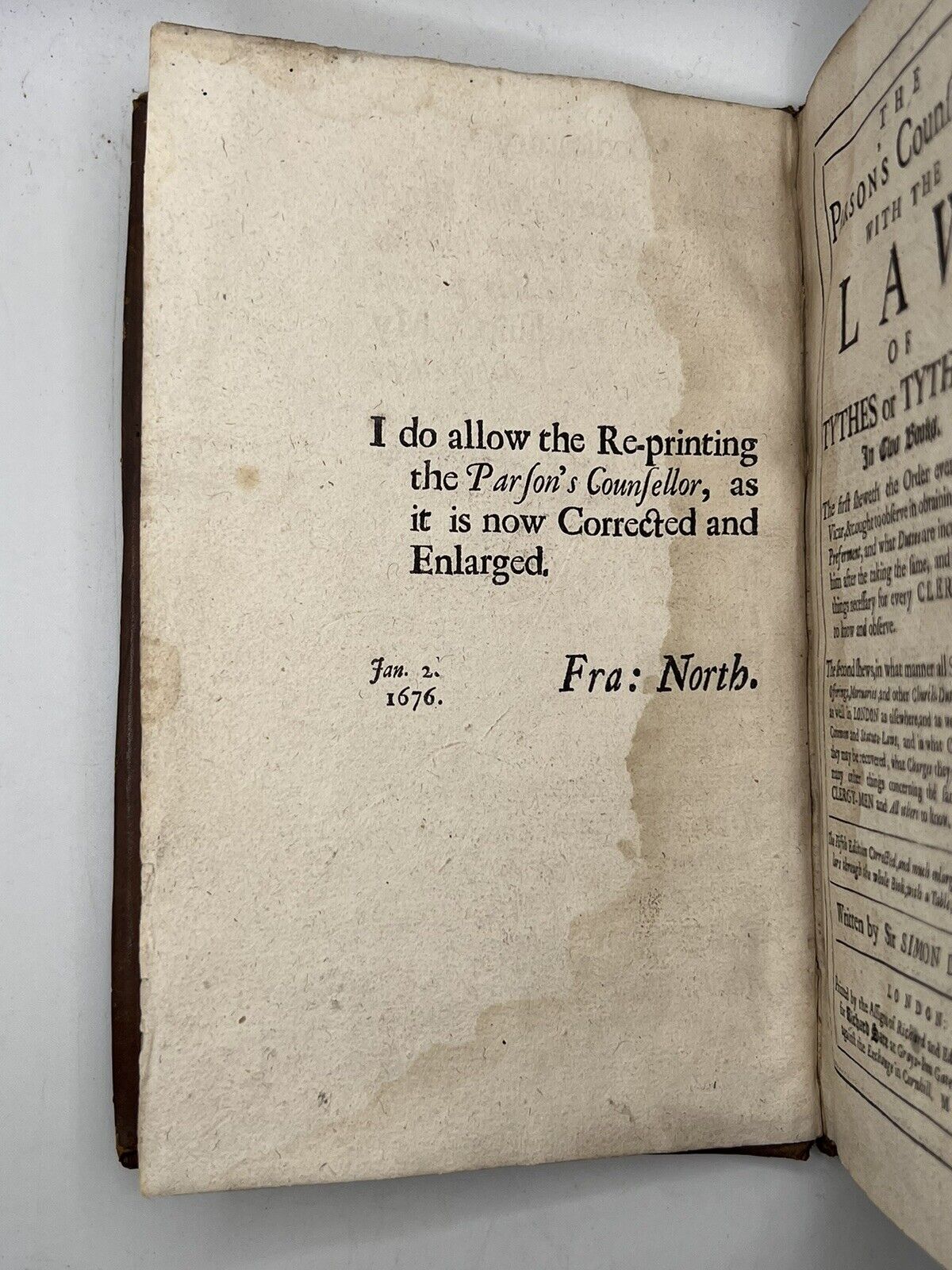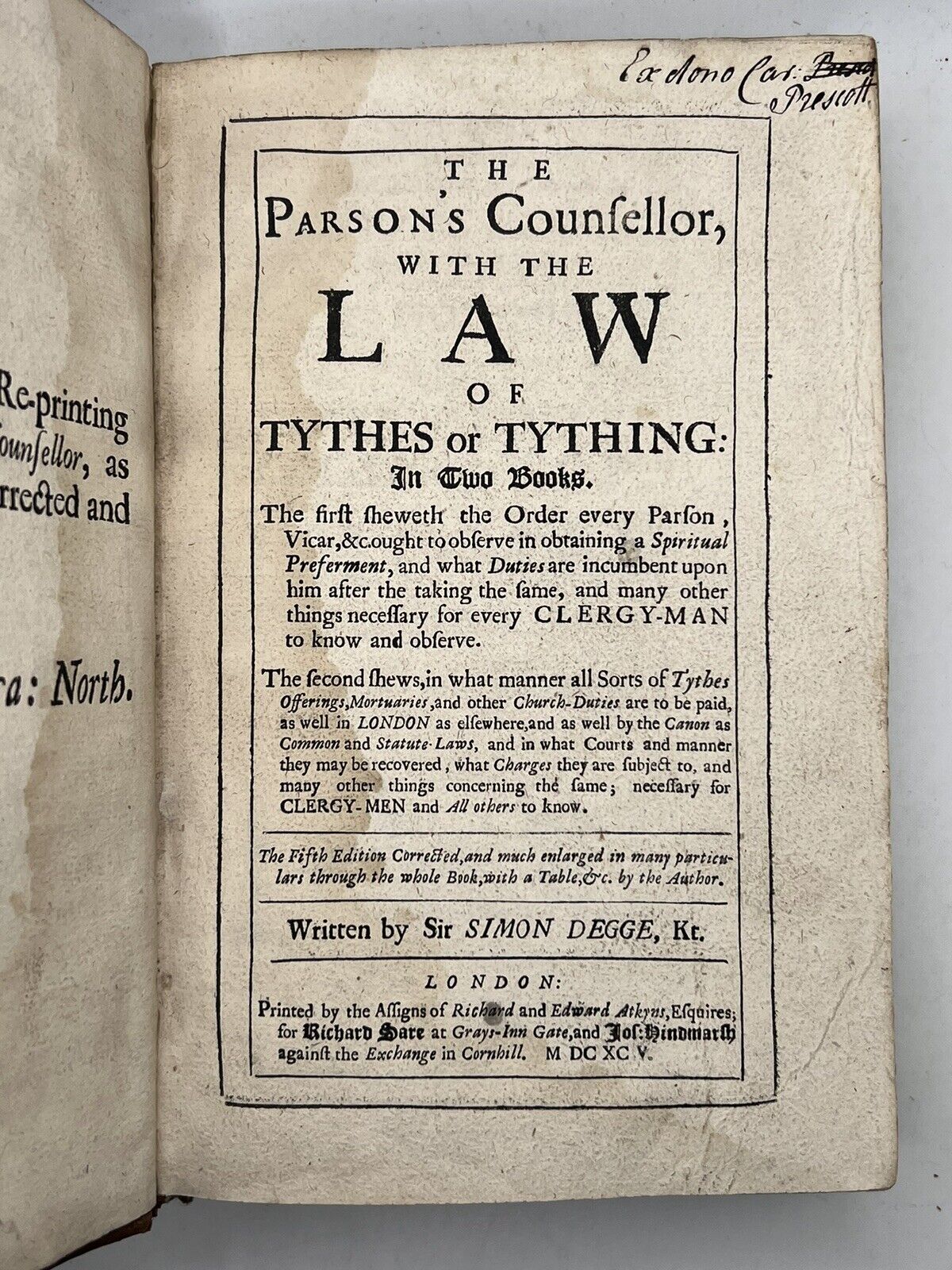 The Parson's Counsellor, with the Law of Tythes or Tything: In Two Books. [...] Written by Sir Simon Degge. London: Richard and Edward Atkyns, 1695.