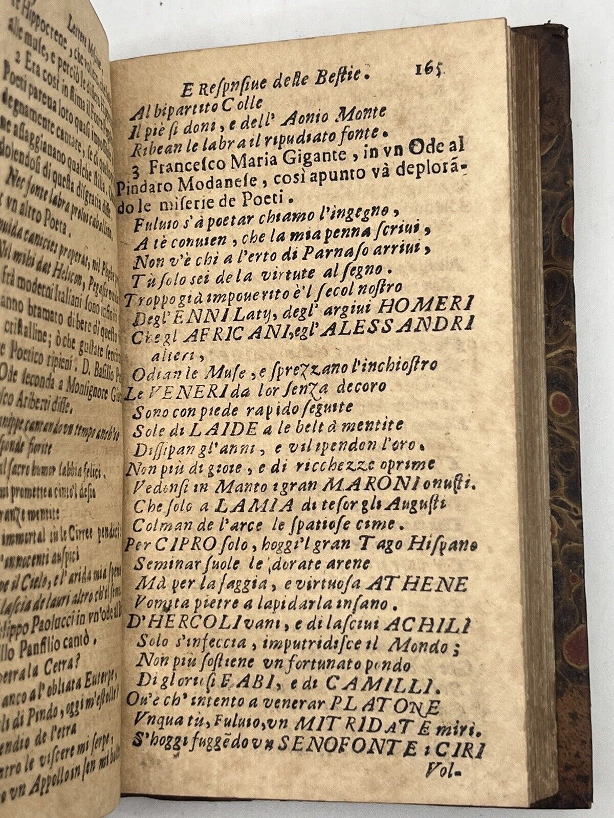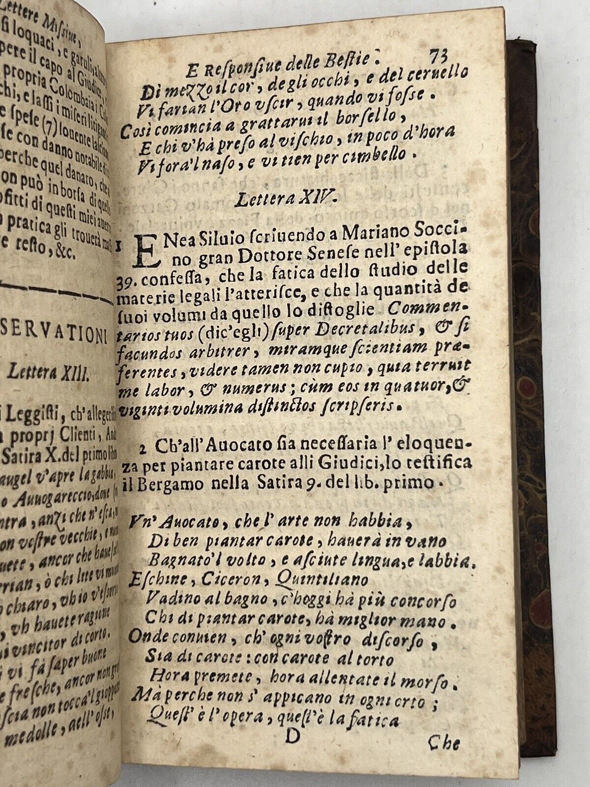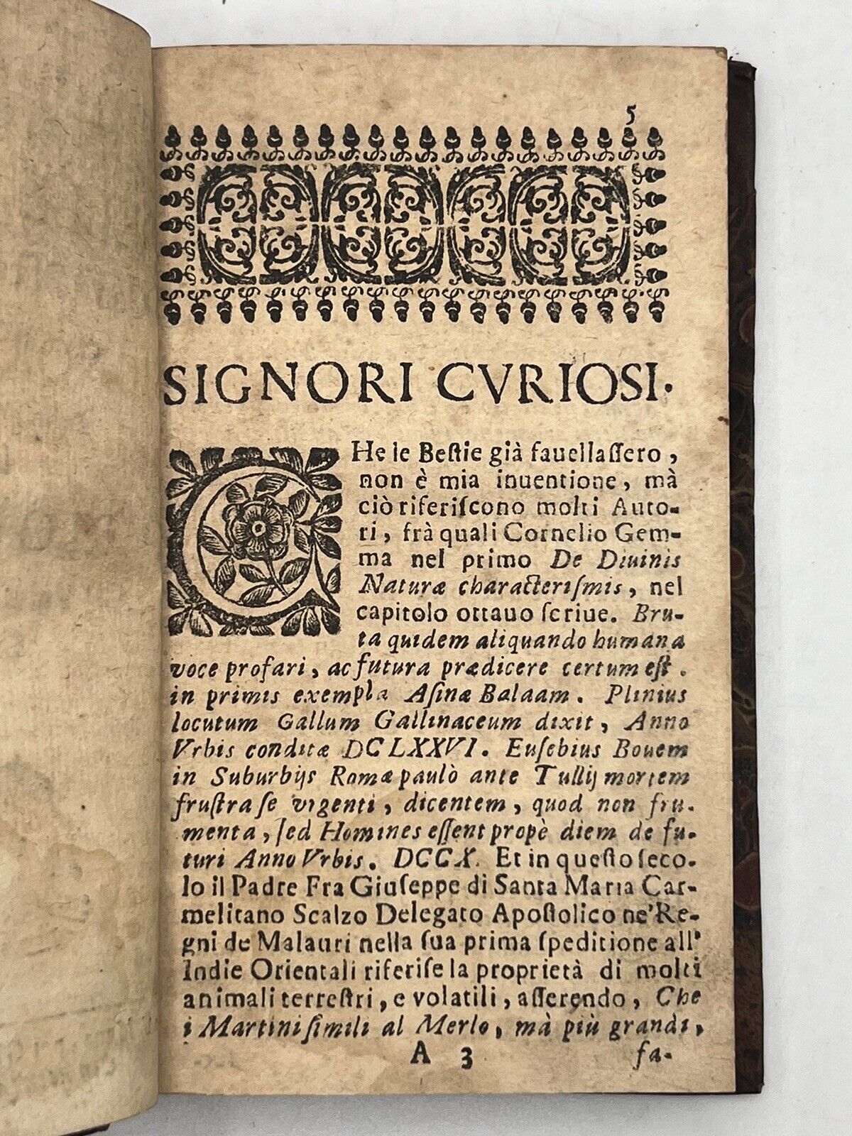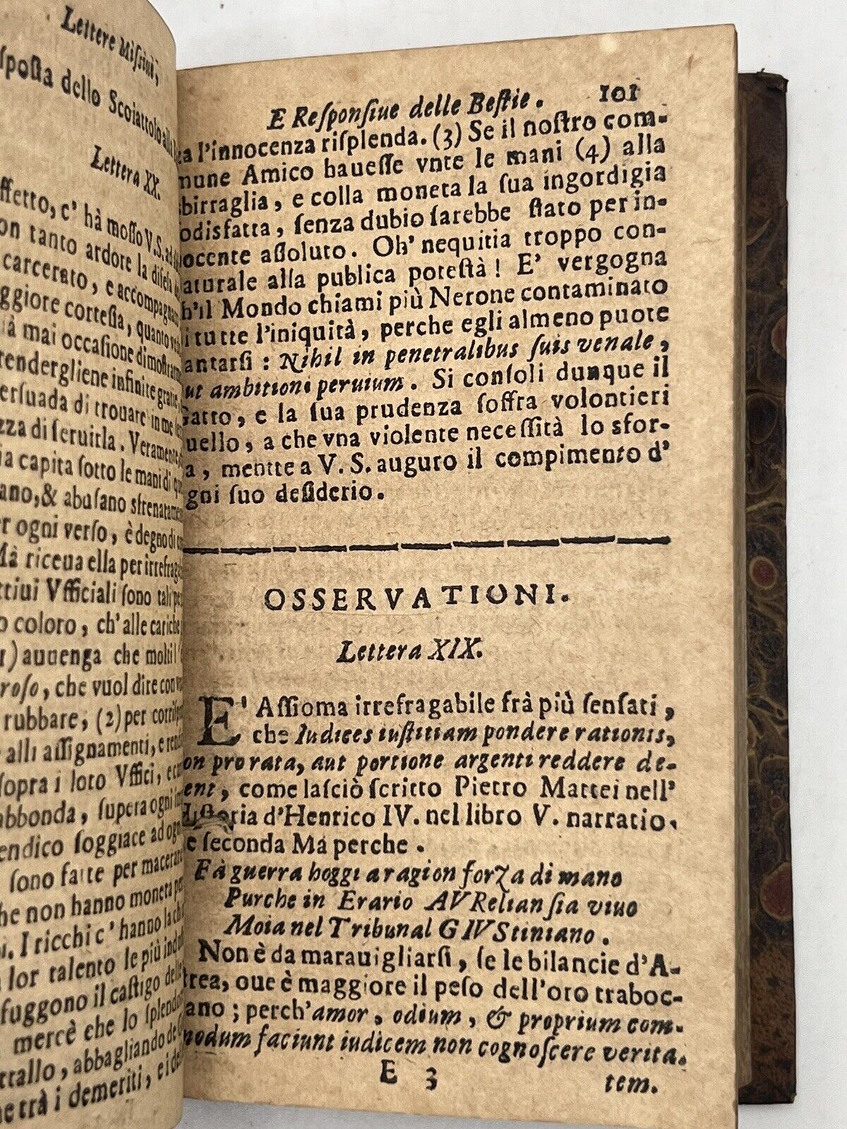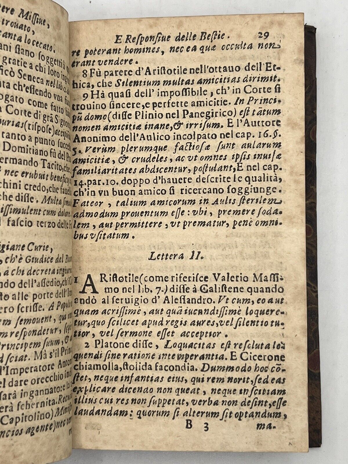 Lettere Missiue, E Responsiue Delle Bestie, Con L'Osseruationi Sopra Cadauna Lettera: Publicate, E Dedicate Da Carlo Moscheni All' Uniuersita De' Signori Curiosi. In Bologna, Pet Giacomo Monti. 1673. Cum Licenza De Superiori.