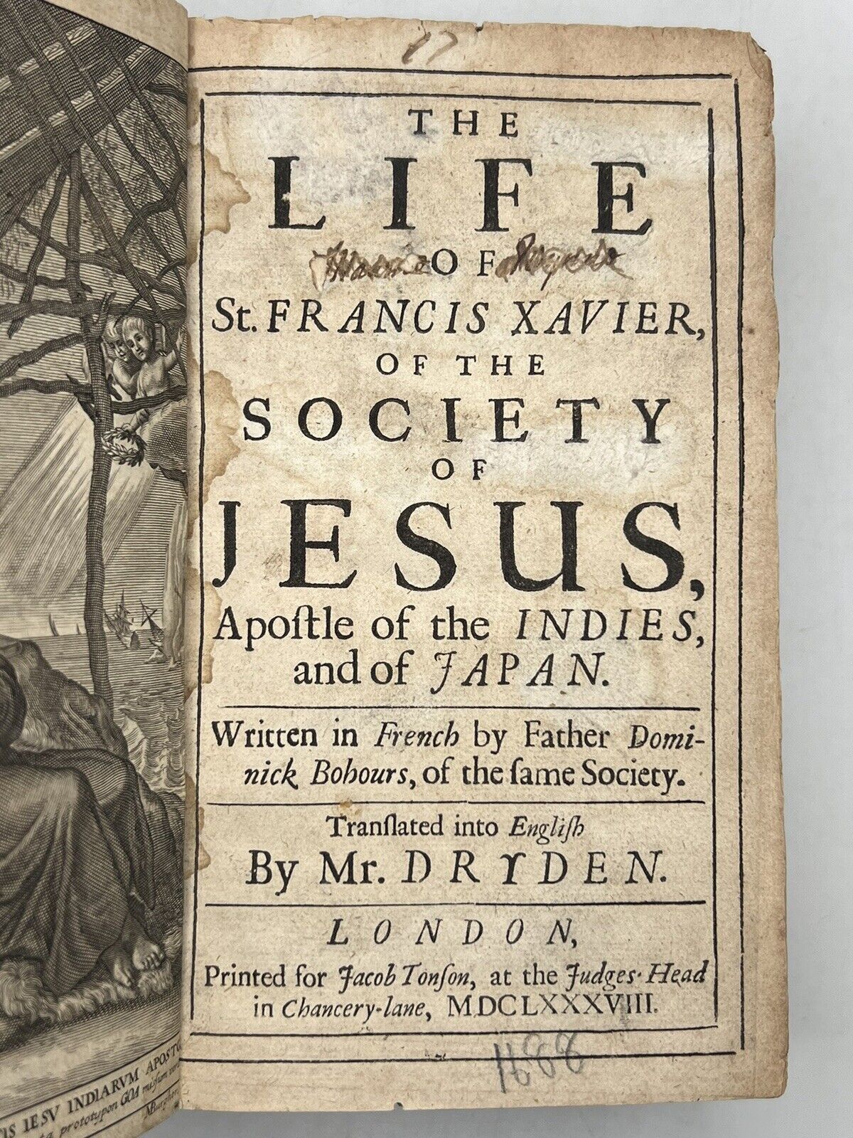 The Life of St. Francis Xavier, of the Society of Jesus, Apostle of the Indies, and of Japan. Written in French by Father Domick Bohours, of the same Society. Translated into English by Mr. Dryden. London: Jacob Tonson, 1688.