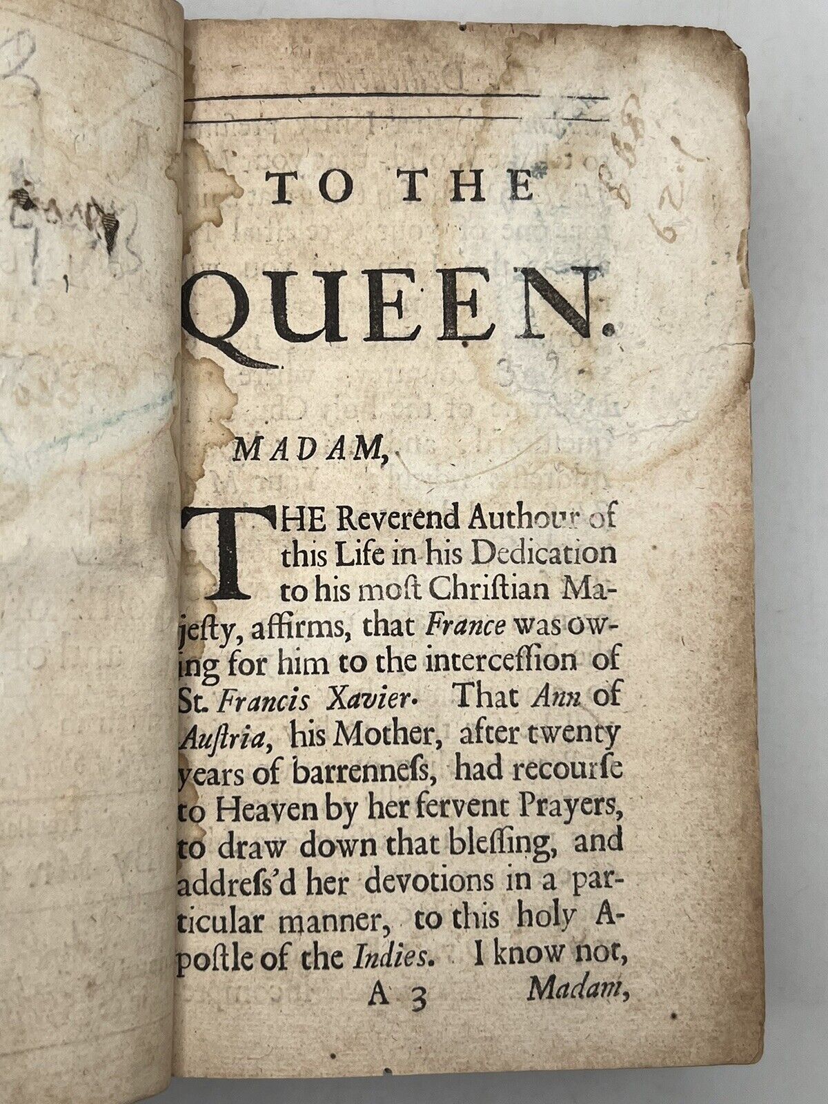 THE VERY RARE FIRST EDITION OF JOHN DRYDEN'S FAMOUS ENGLISH TRANSLATION OF THE LIFE OF SAINT FRANCIS XAVIER.