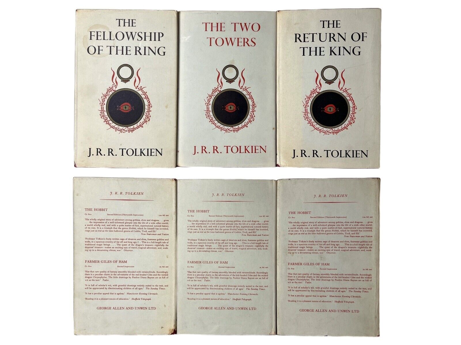 AN EXCELLENT SET OF THE FIRST EDITIONS OF THE COMPLETE SET OF THE LORD OF THE RINGS SERIES IN THEIR ORIGINAL DUST JACKETS!