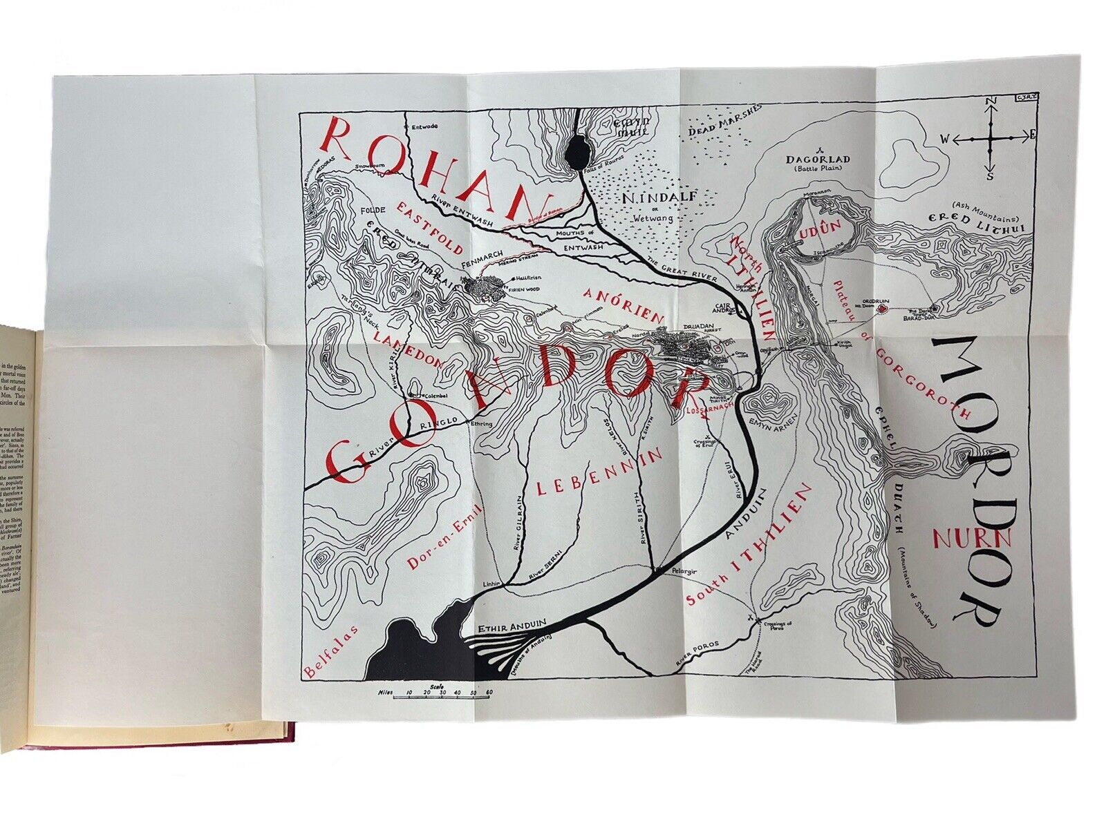 FOTR dust jacket overall very good, Two Towers dust jacket near fine to fine, ROTK dust jacket very good. Bindings all fine, text blocks all very fine (flawless), maps all fine to very fine, some offsetting to ffep and rfep in each volume.