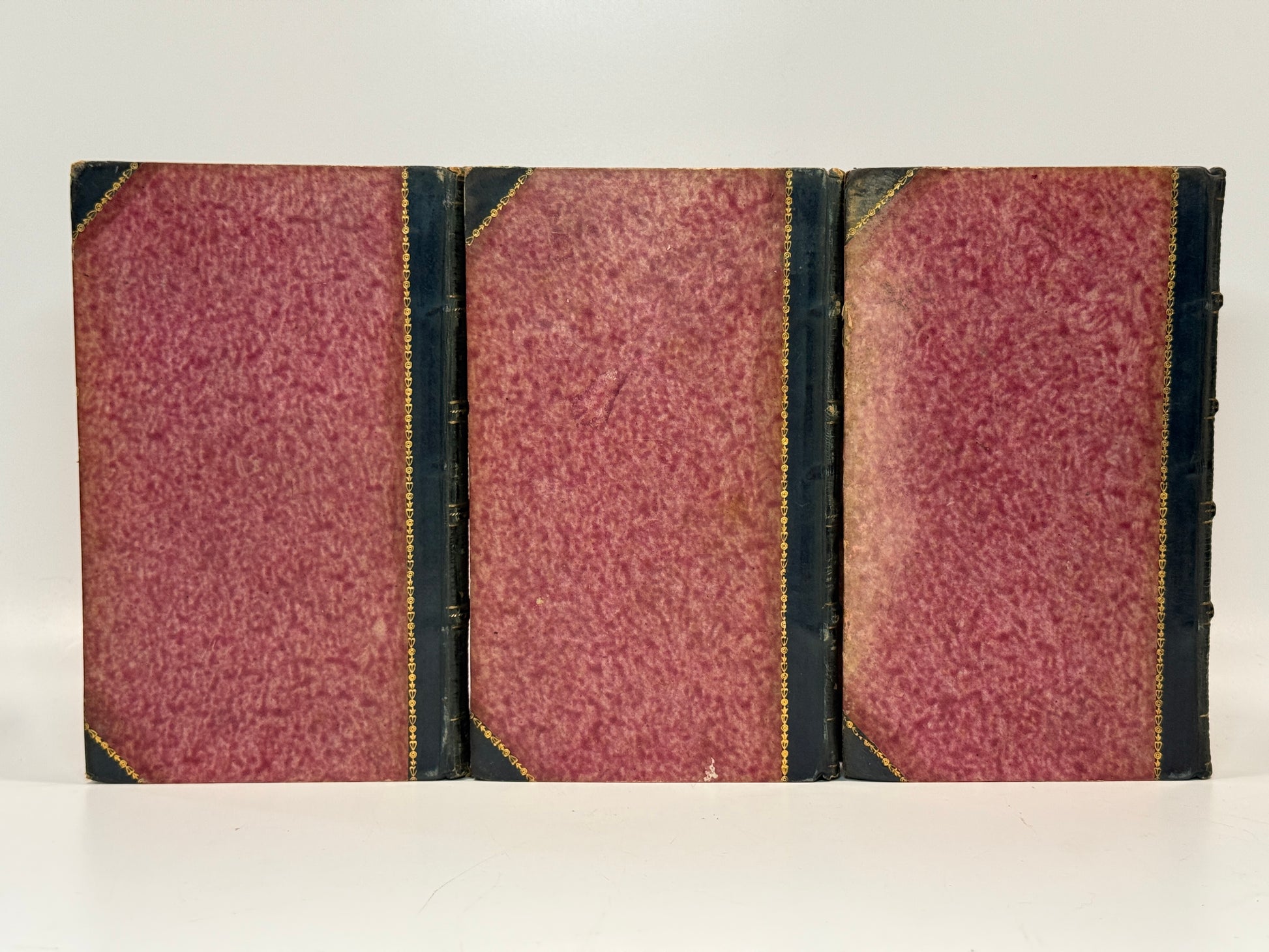 Contemporary quarter navy morocco over marbled paper backed boards with gilt titles and volume numbers to spines. Bindings with very minor signs of wear, some minor toning, very minor and faint marks, and few very minor scratches. All boards attached with wear to joints and hinges, front hinge of volume one cracked. The outer edges of the boards of volume three dulled and slightly more worn. Shelf and edge wear. Marbled page edges somewhat dulled with the top edges darkened. Bookplate attached to front pastedowns and binder's sticker attached to front blanks. Text blocks very clean with light toning and occasional foxing. Uncollated.