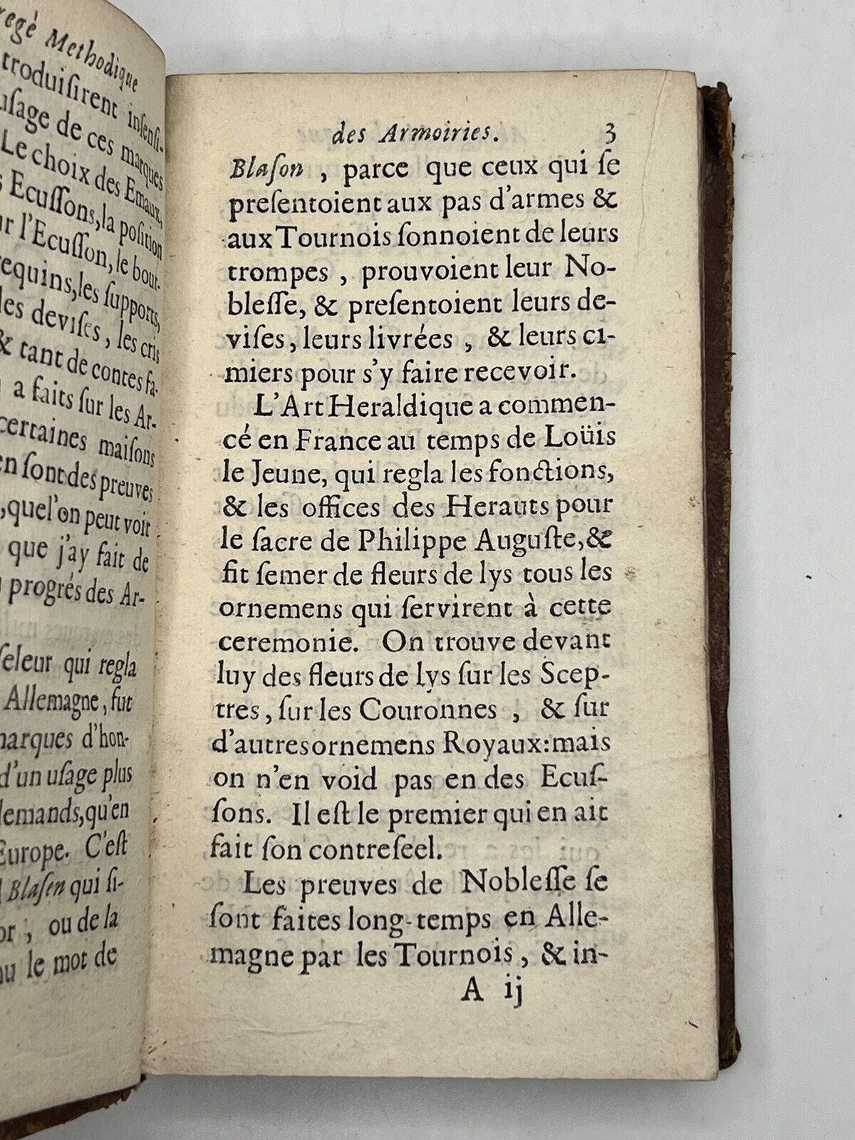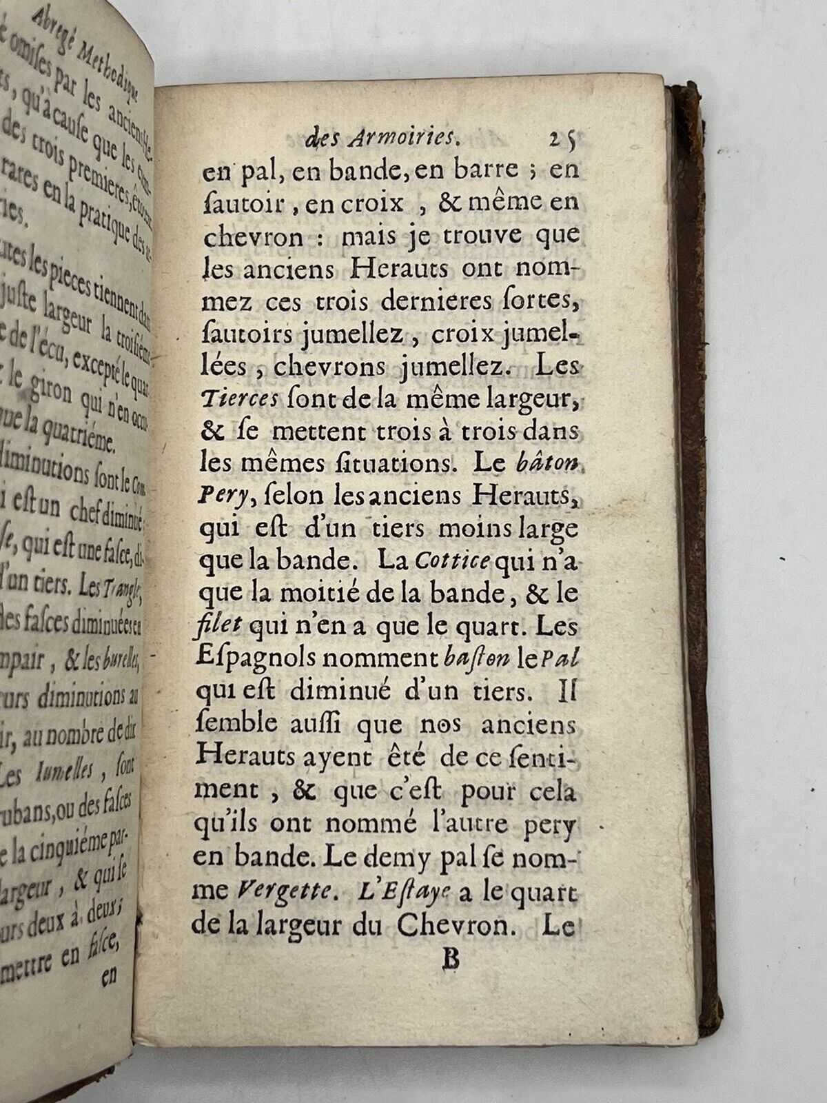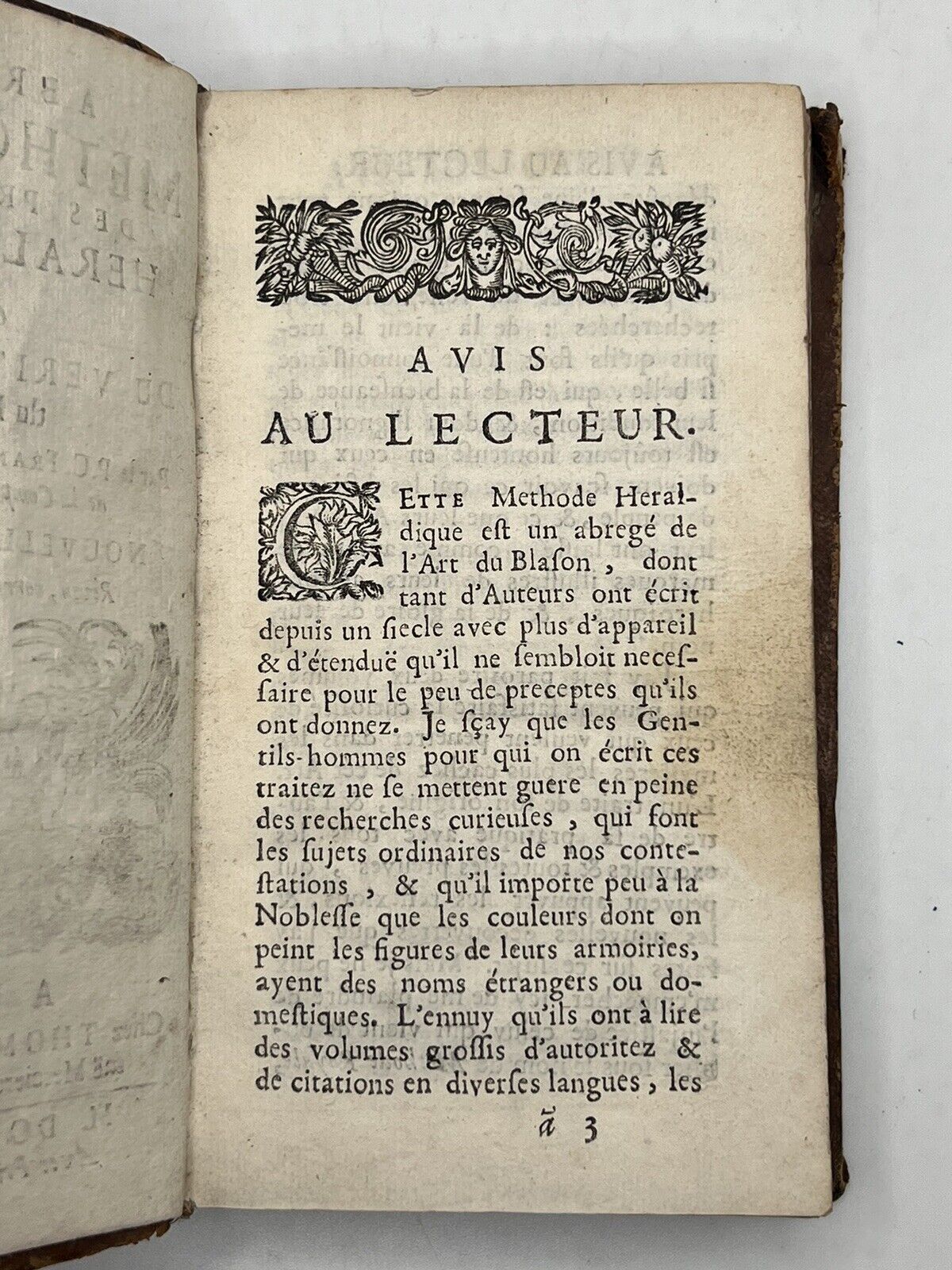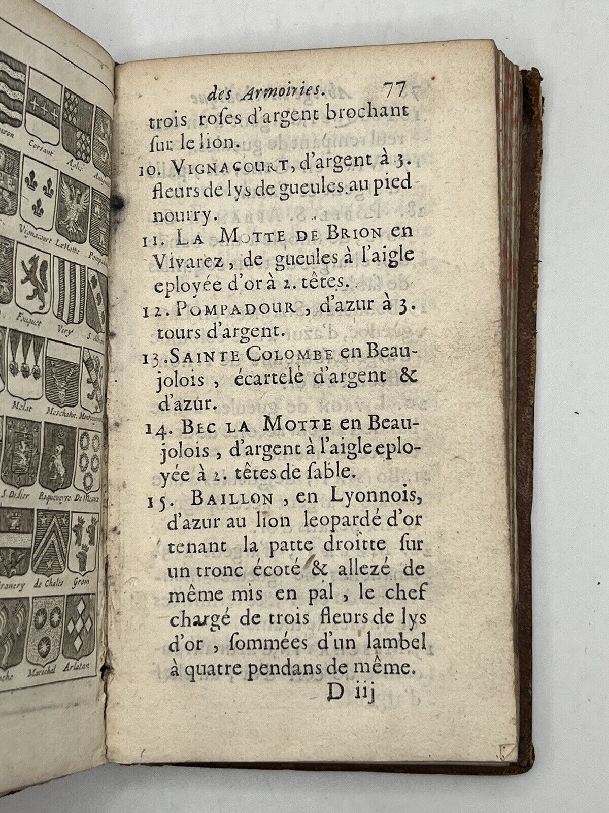 Abrege Methodique des Principes Heraldiques, ou du Veritable art du Blason. Par le P.C. Francois Menetrier de la Campagnie de Jesus. Nouvelle Edition. A Lyon, chez Thomas Amaulry, 1686.