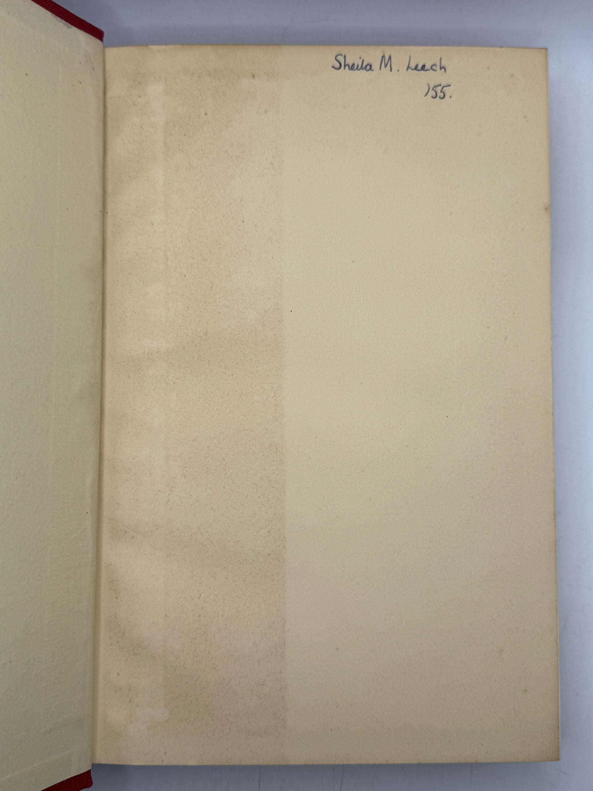 Binding in excellent condition, cloth bright and without stains. Fresh without rubbing, minor bumps to extremities of the spine as typical. Boards securely attached without wear to joints. Hinges uncracked, secure. Gilt on spine without fault. Top page edge coloured red contemporaneously as with all copies, minor loss to the red colour. Binding straight and not cocked and stands straight without shelf lean. Collated as complete including the foldout map and original blanks. Minor toning to endpapers commensurate with the dust jacket as typical. Ownership inscription of Sheila M. Leech to head of front free endpaper recto in neat small blue ink, probably contemporary. Exceptionally clean throughout the text, no foxing, etc. A near fine to fine example as it pertains to the book itself.