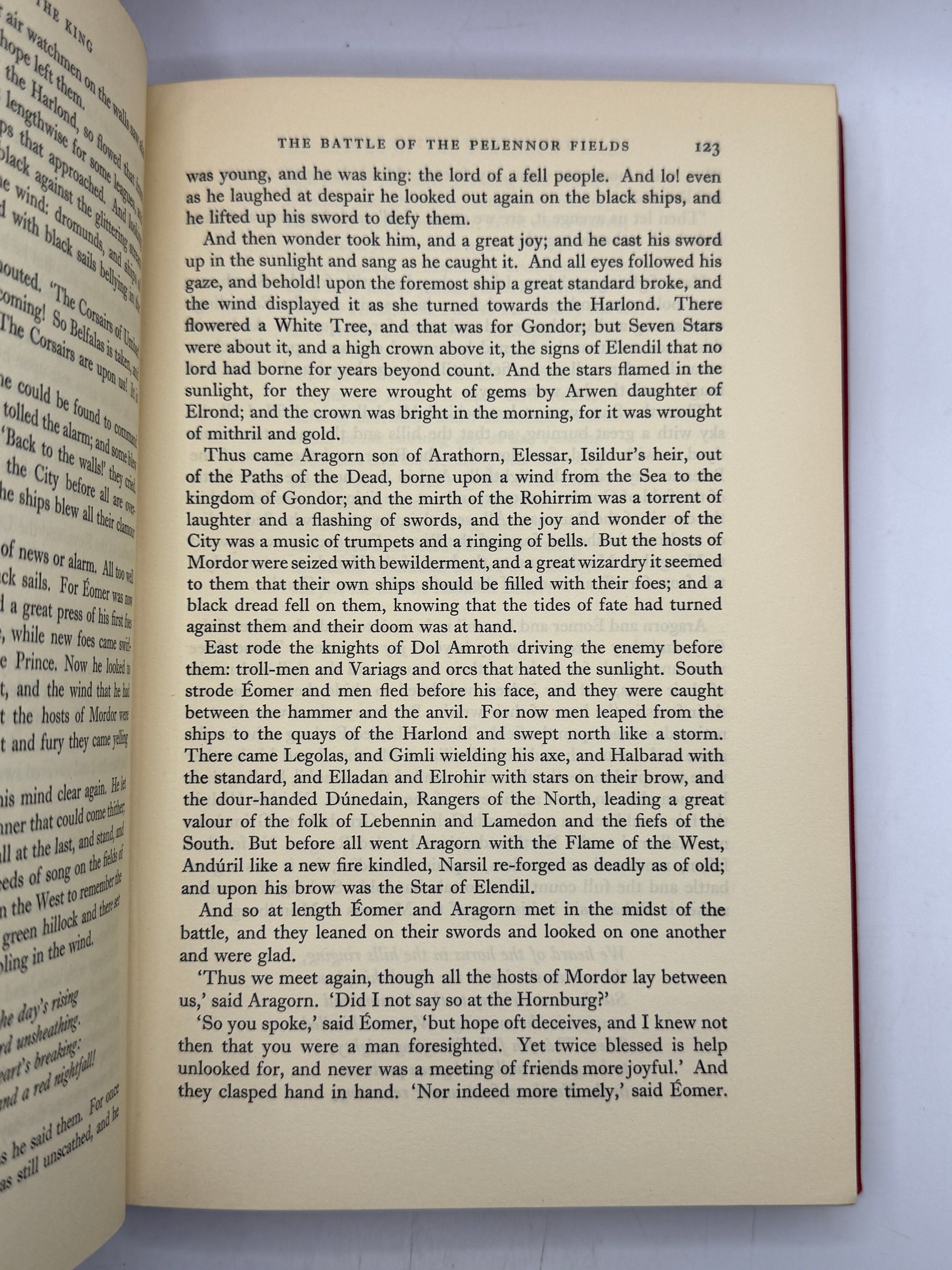 A remarkable copy of the true first edition of J.R.R. Tolkien's Return of the King, the third and final part of The Lord of the Rings book series. This copy is particularly remarkable for being in such excellent condition - the book itself is in near fine condition and the original first state dust jacket is a lovely example without the usual splits and significant loss.
