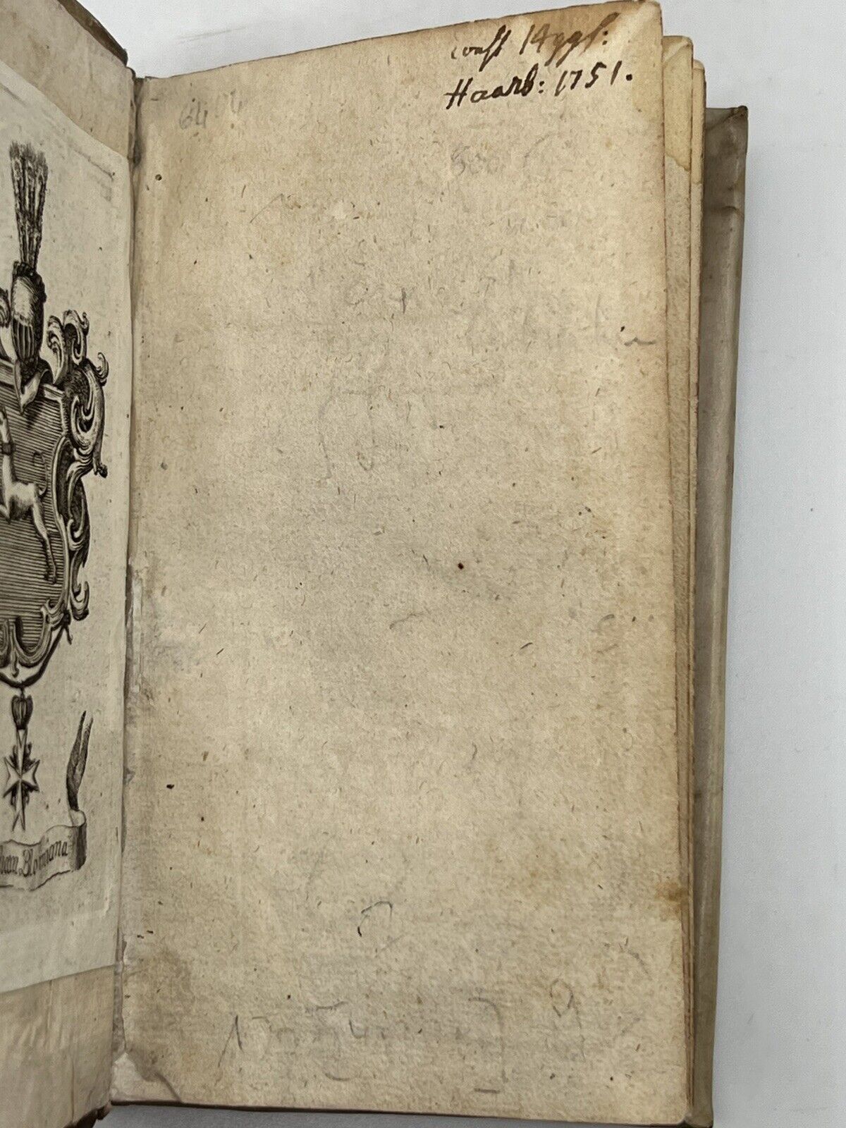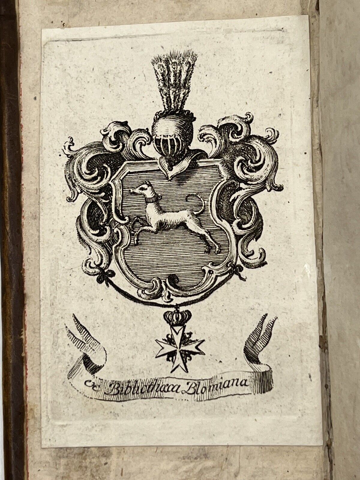 Armorial bookplate reading "Ex Bibliotheca Blomiana".