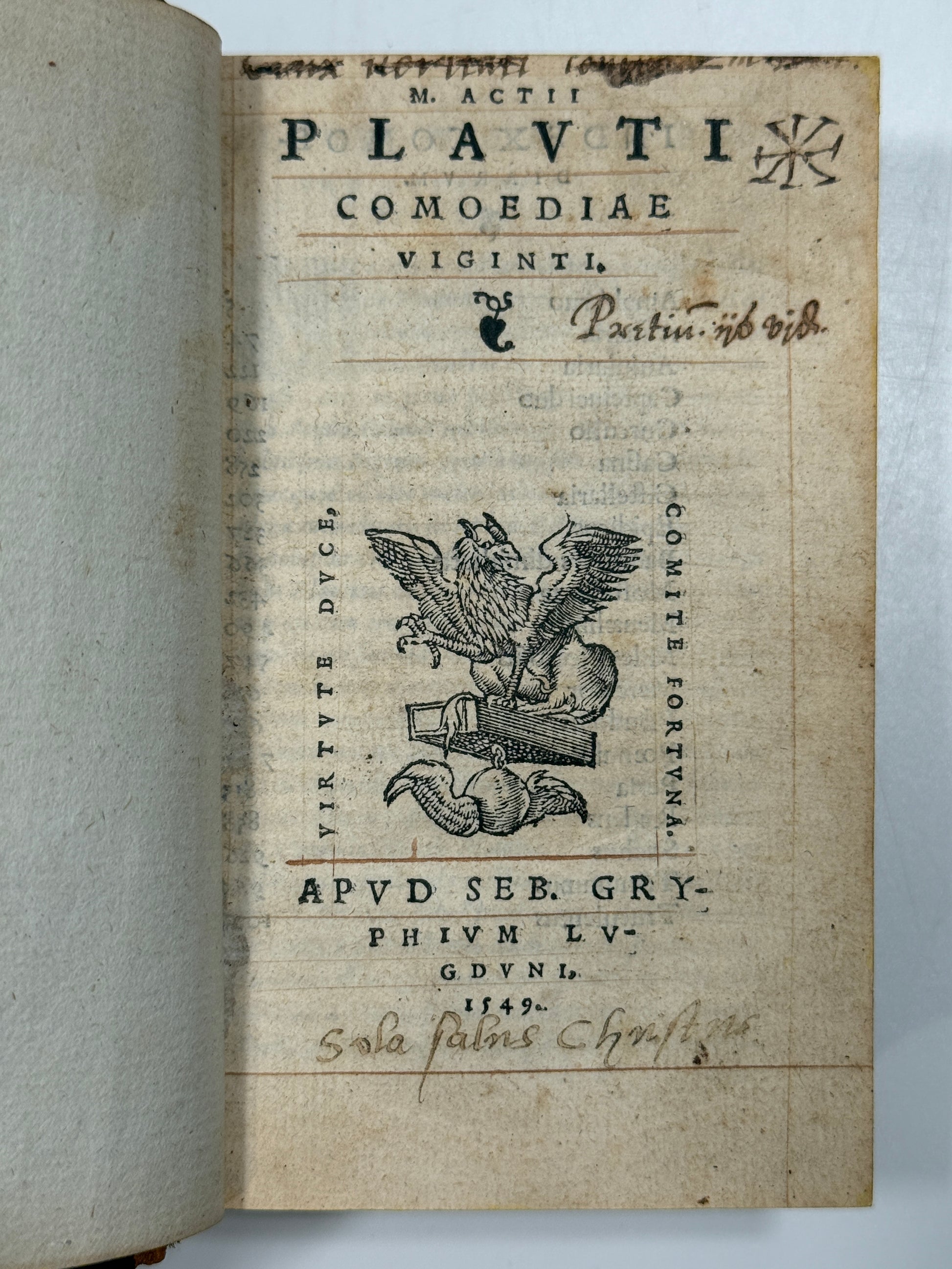 M. Actii Plauti Comoediae Viginti. Apud Seb. Gryphium Lugduni, 1549.