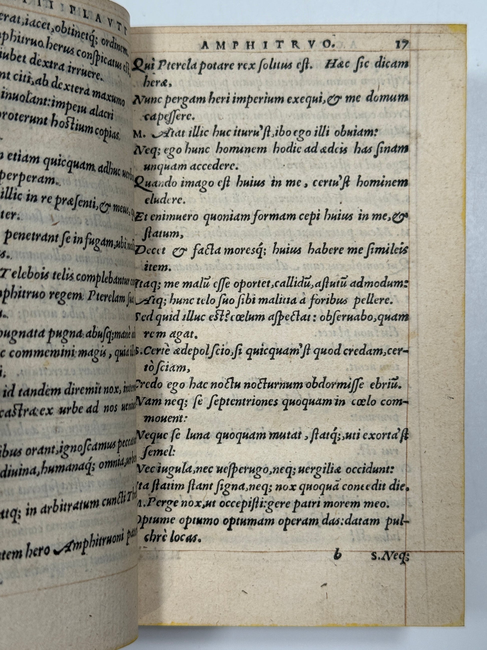 The Twenty Comedies of Maccius Plautus. At the House of Sebastian Gryphius, Lyon, 1549.