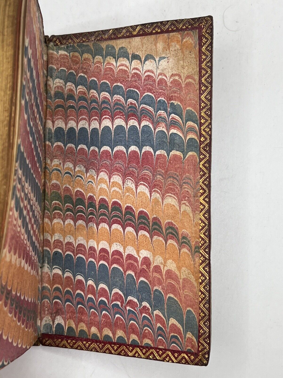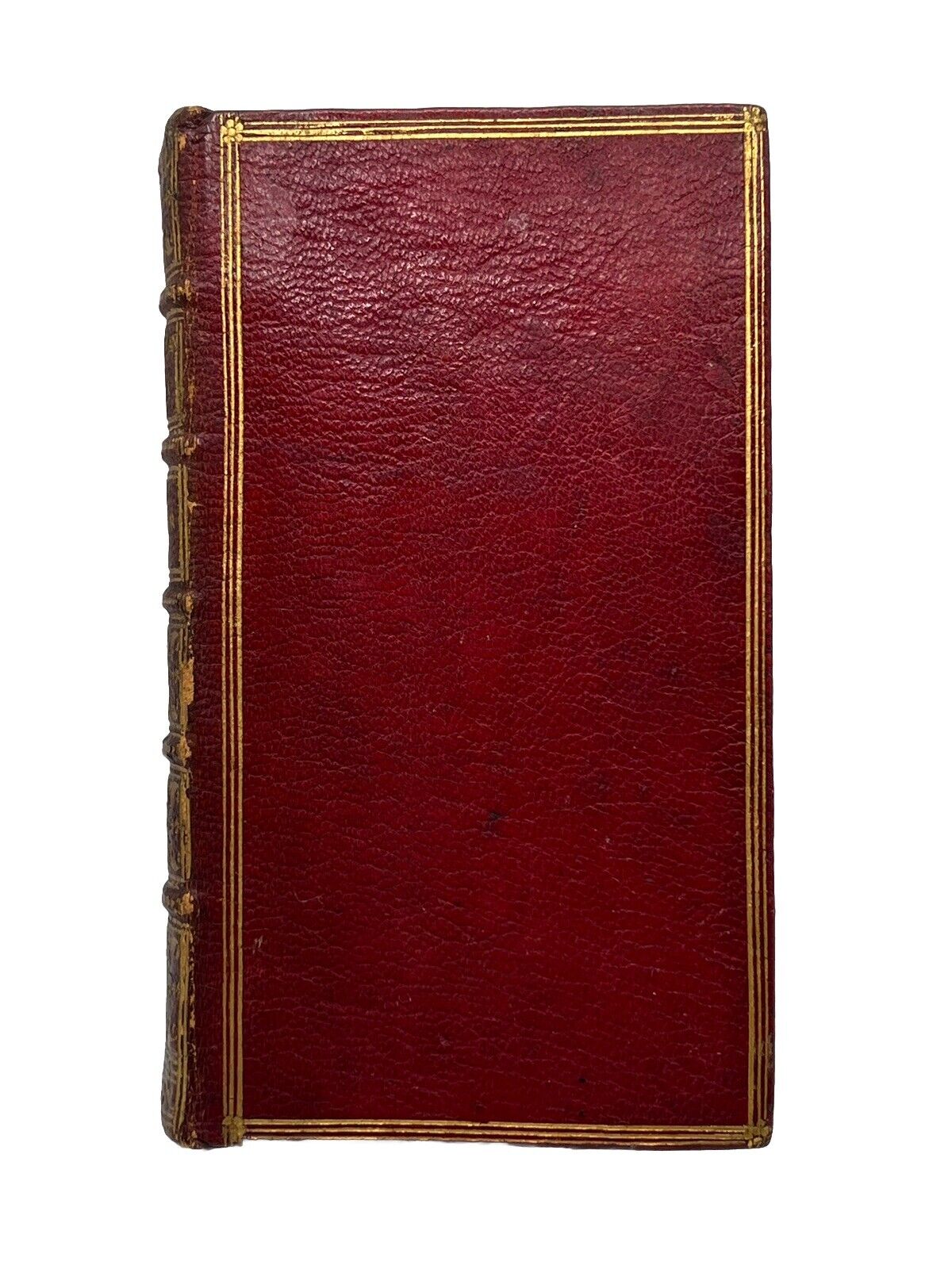 Full red grained calf with gilt borders to boards, gilt title and publisher in compartments to the spine between raised bands, other compartments with decorative gilt. Bindings lightly worn with black marks to the rear board. Both boards attached with rubbing along joints. Minor shelf and edge wear. All page edges gilt with minor scratches. Bookplate attached to the front pastedown. Text block very clean with light toning and occasional foxing. Very faint ink to rear of the errata.