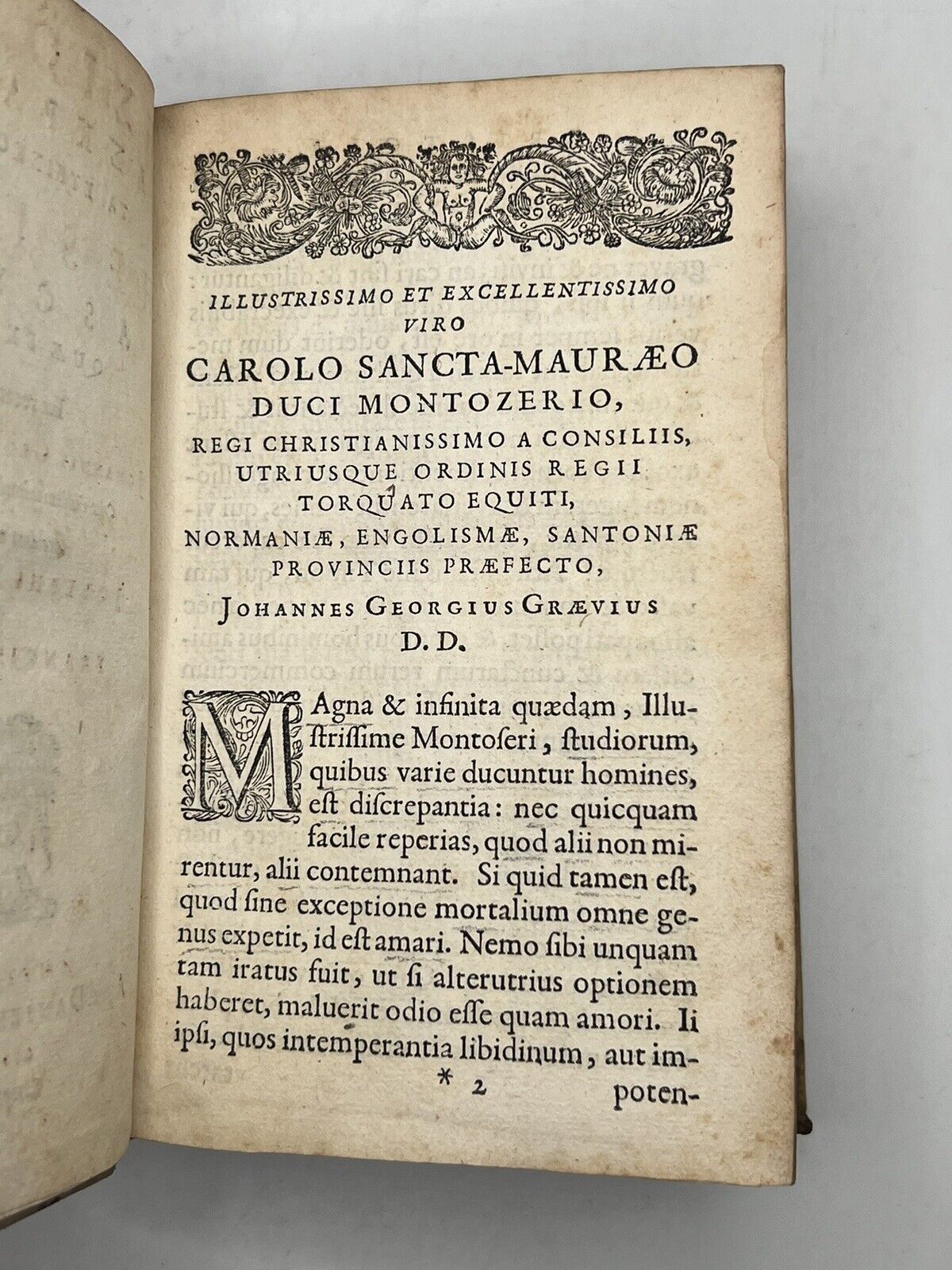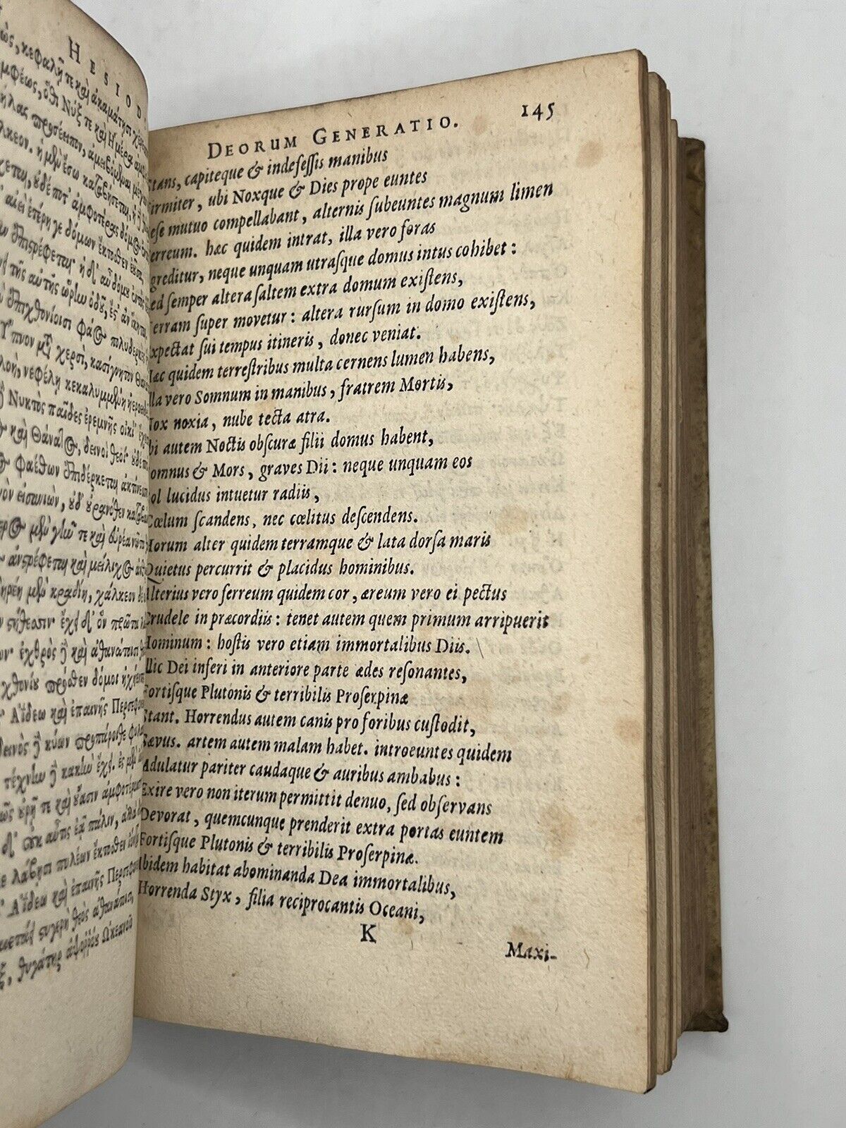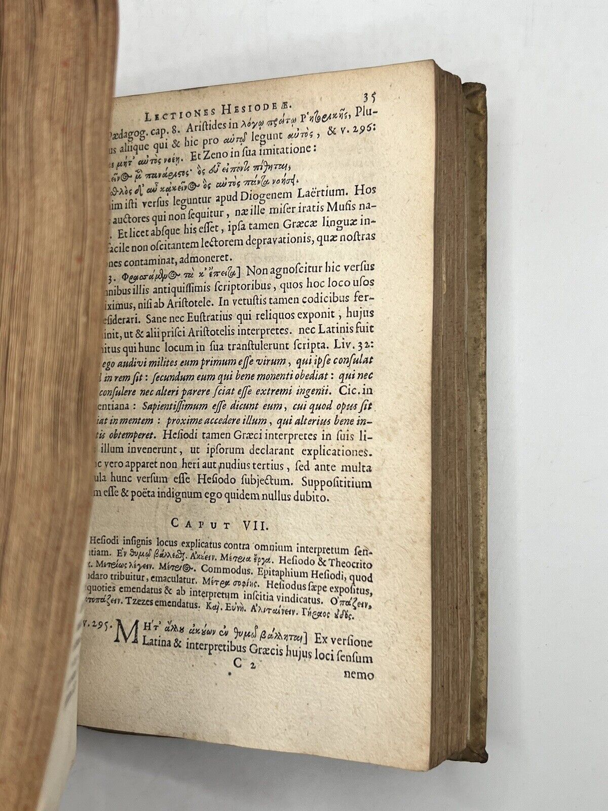 A beautiful bright copy of the Elzevir Press edition of Hesiod, with their characteristic printer's device to the title page. An excellent bilingual edition with the original Greek and Latin translation on opposing pages. This copy is bound with Lectiones Hesiodeae with the notes of Scaligeri and Guieti, also published in 1667.