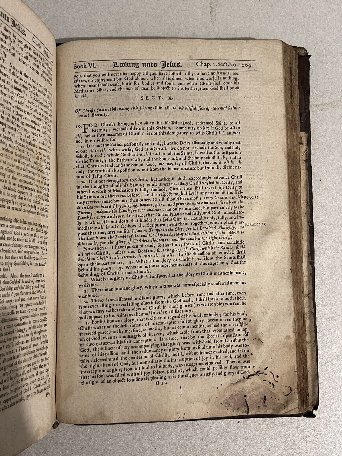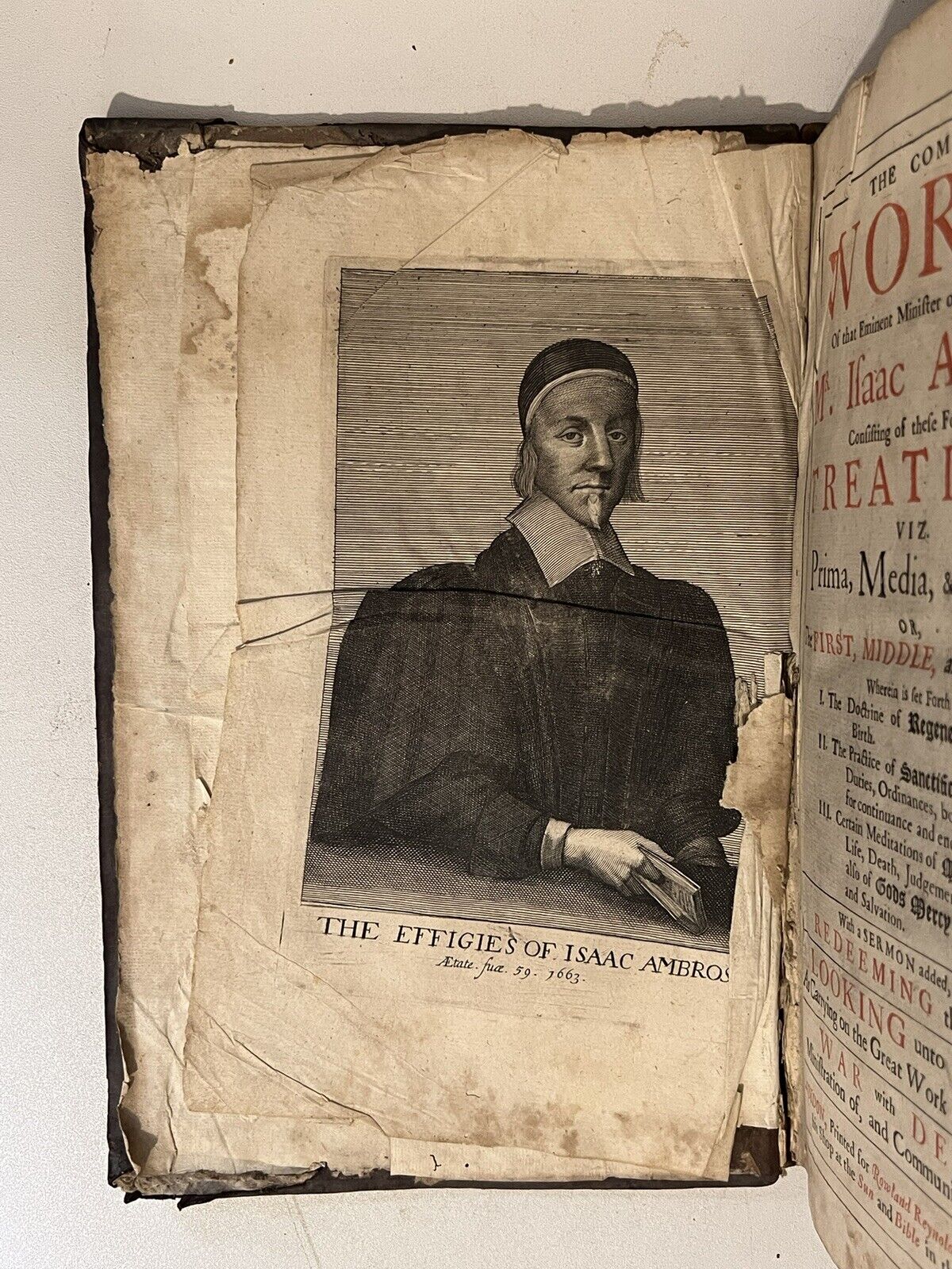 The Compleat Works of That Eminent Minister of Gods Word Mr. Isaac Ambrose, Consisting of These Following Treatises, Viz. Prima, Media, & Ultima: Or, the First, Middle, and Last Things. Wherein is Set Forth: I. The Doctrine of Regeneration, or the New Birth. II. The Practice of Sanctification, in the Means, Duties, Ordinances, Both Private and Publick, for Continuance and Encrease of a Godly Life. III. Certain Meditations of Mans Misery, in His Life, Death, Judgement, and Execution: As Also of Gods Mercy, in Our Redemption, and Salvation. With a Sermon Added, Concerning Redeeming the Time. Looking Unto Jesus, as Carrying on the Great Work of Mans Salvation. War with Devils, Ministration of, and Communion with Angels. London: Printed for Rowland Reynolds, 1674.