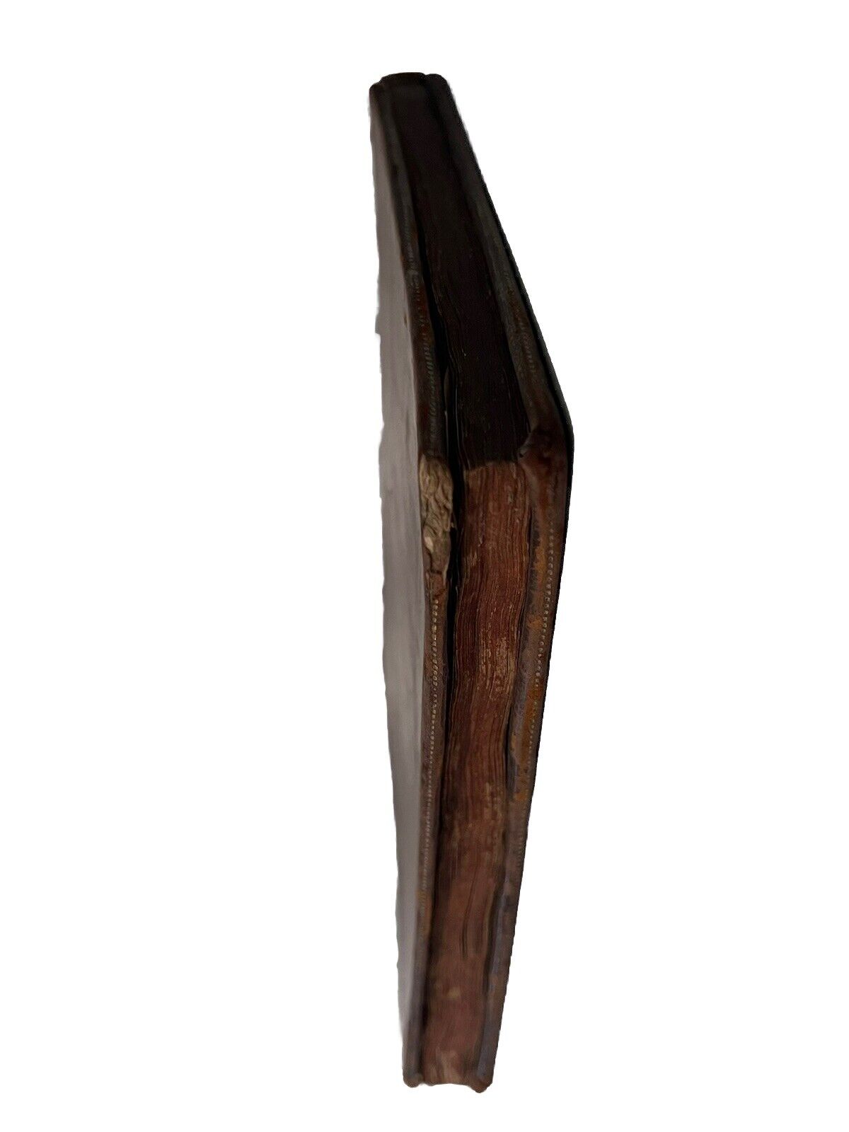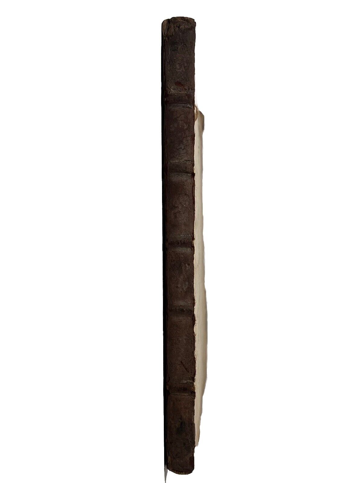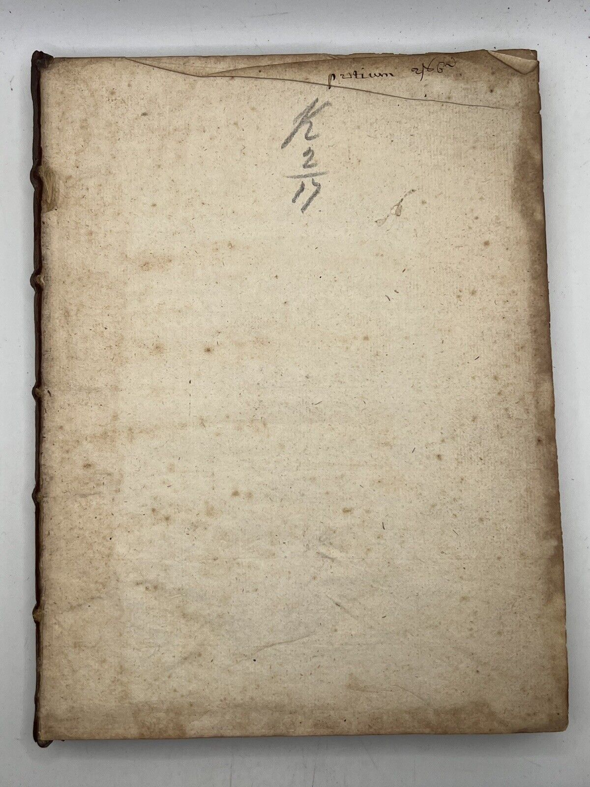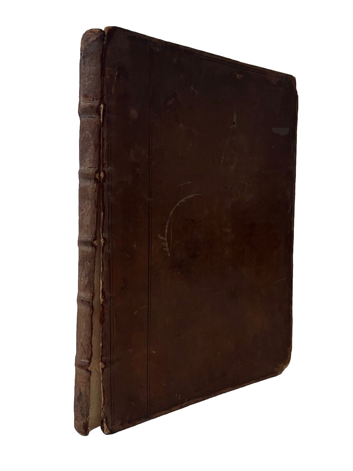 Full brown calf binding with blind-stamped boards. Spine prominently rubbed and worn. Binding rubbed and scuffed with some scratches, small hole to the leather of the front board, and some leather fragments lacking from the rear board. Shelf and edge wear. Front board detached. Rear board attached with cracked joint and hinge starting, thus fragile. Red page edges dulled. Bookplate attached to front pastedown. Endpapers foxed with edge toning. Ink inscription to front and rear blank. Very small hole to the front blank. Pencil inscription to front blank. Text block very clean with light edge toning and occasional foxing. One illustrated plate only, some copies are known to contain two.