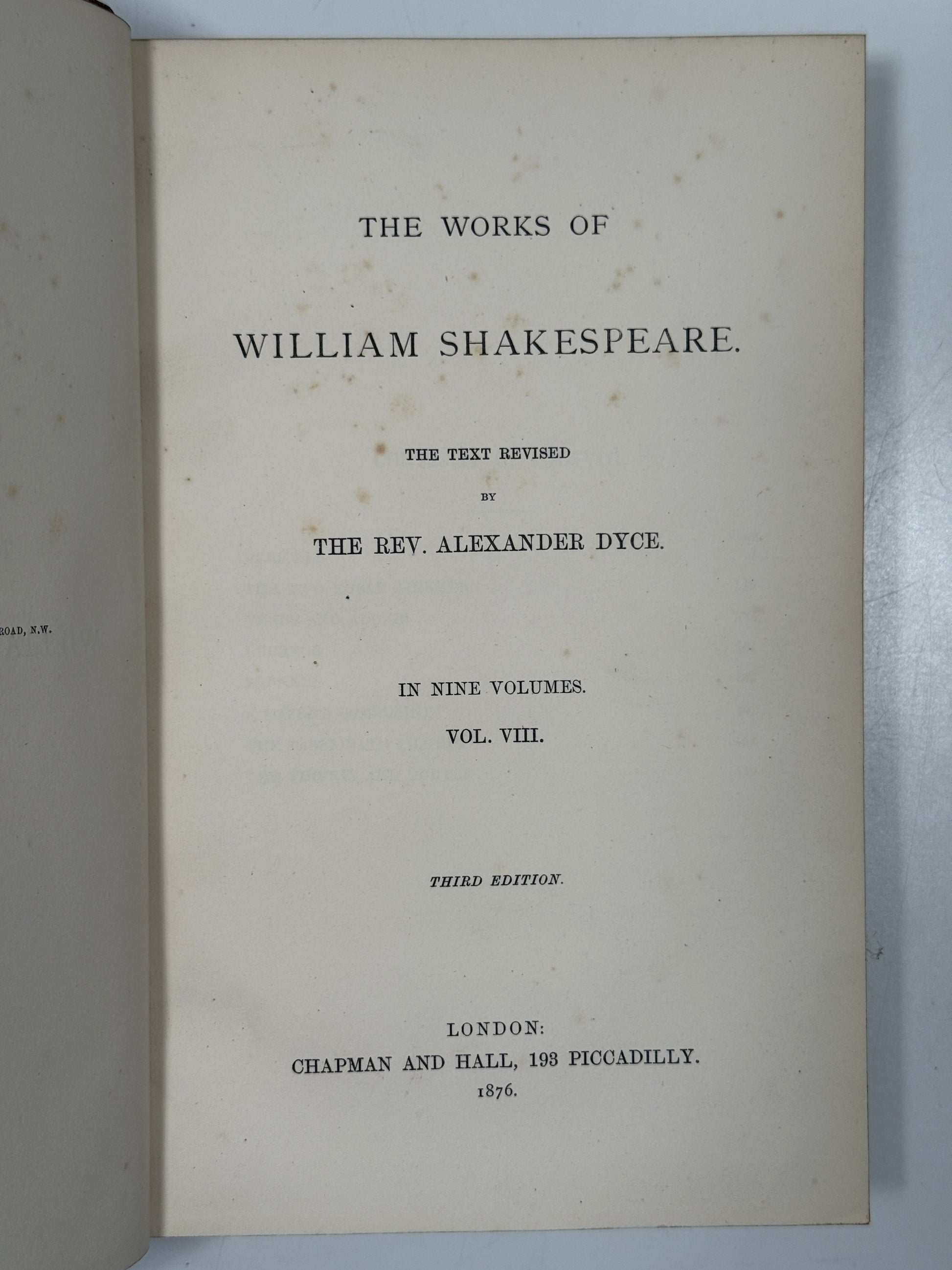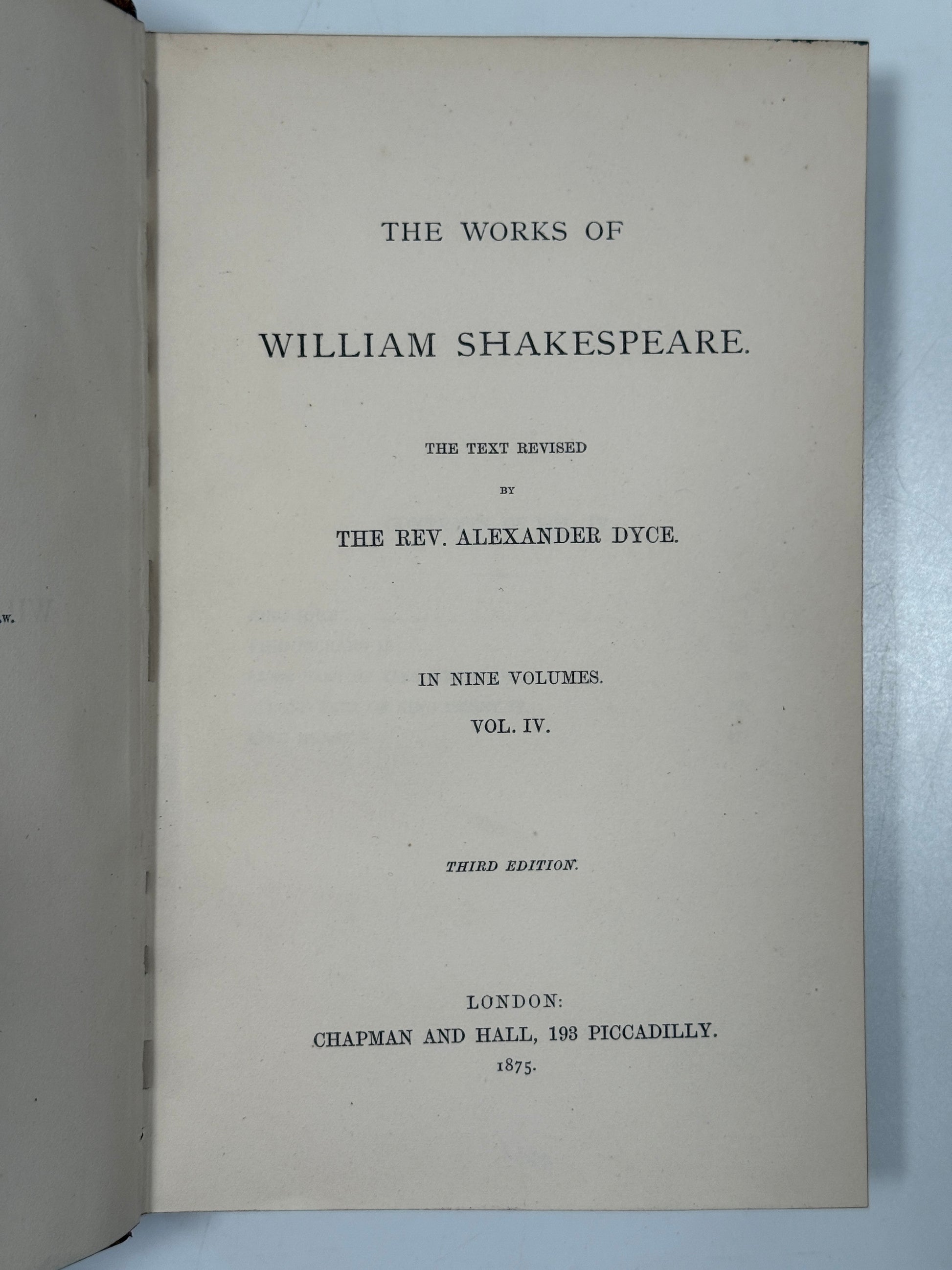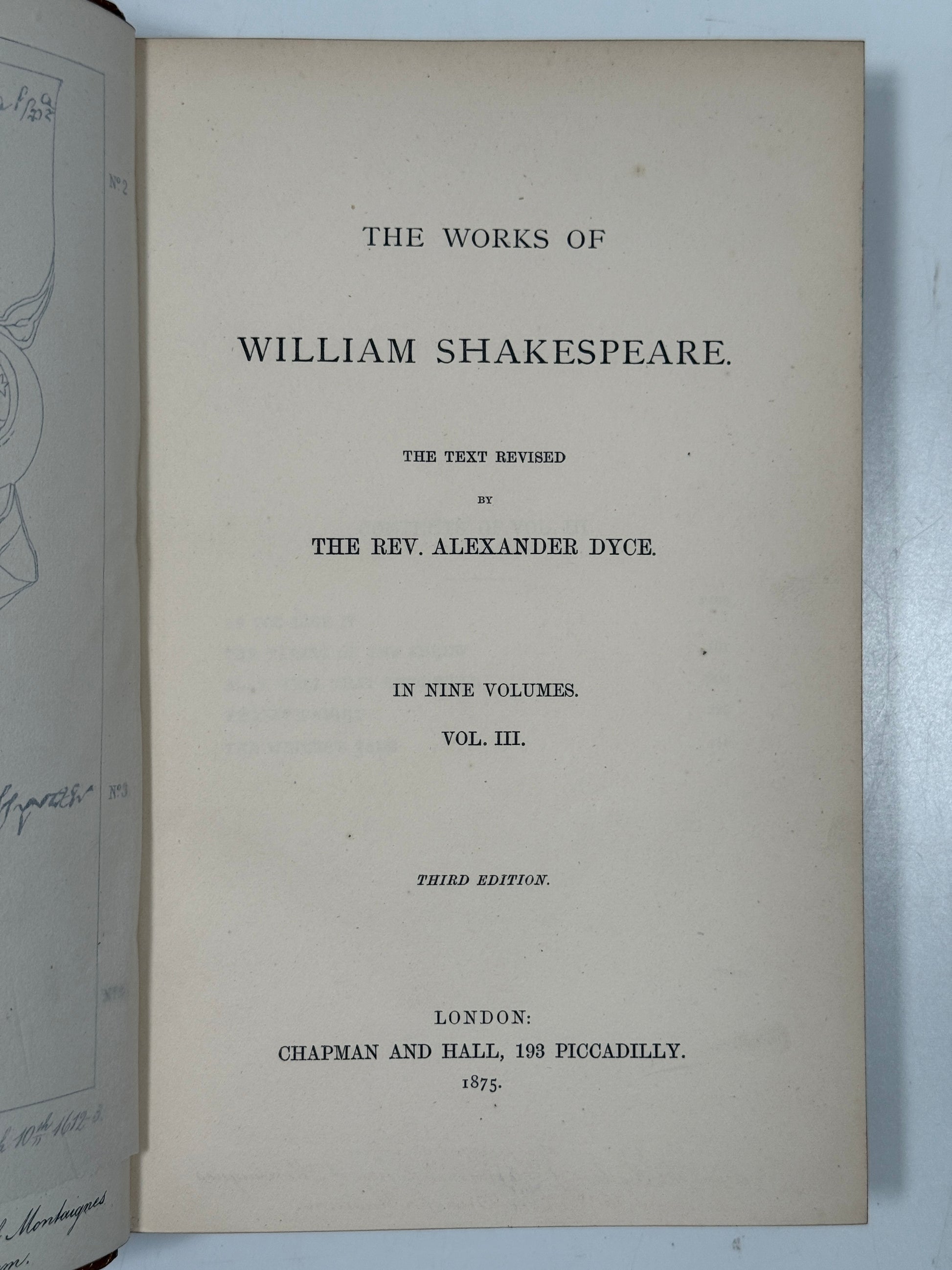 The Works of William Shakespeare. The Text Revised by the Rev. Alexander Dyce. In Nine Volumes. Third Edition. London: Chapman and Hall, 1875, 8vo.