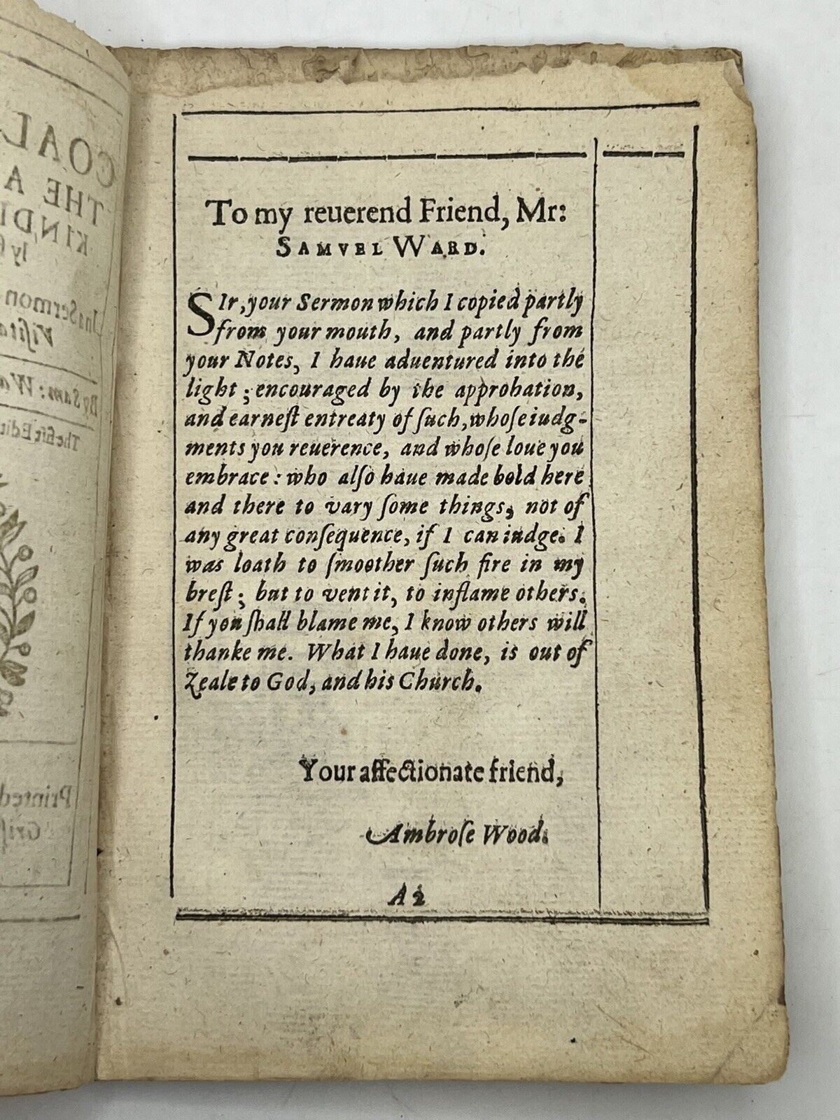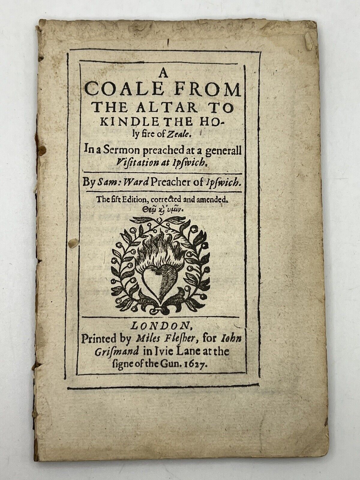 A Coale From the Altar to Kindle the Holy Fire of Zeale. In a Sermon Preached at a General Visitation at Ipswich. By Sam: Ward, Preacher of Ipswich. The Fift Edition, Corrected and Amended. London: Printed by Miles Fletcher, for John Grismand, 1627.