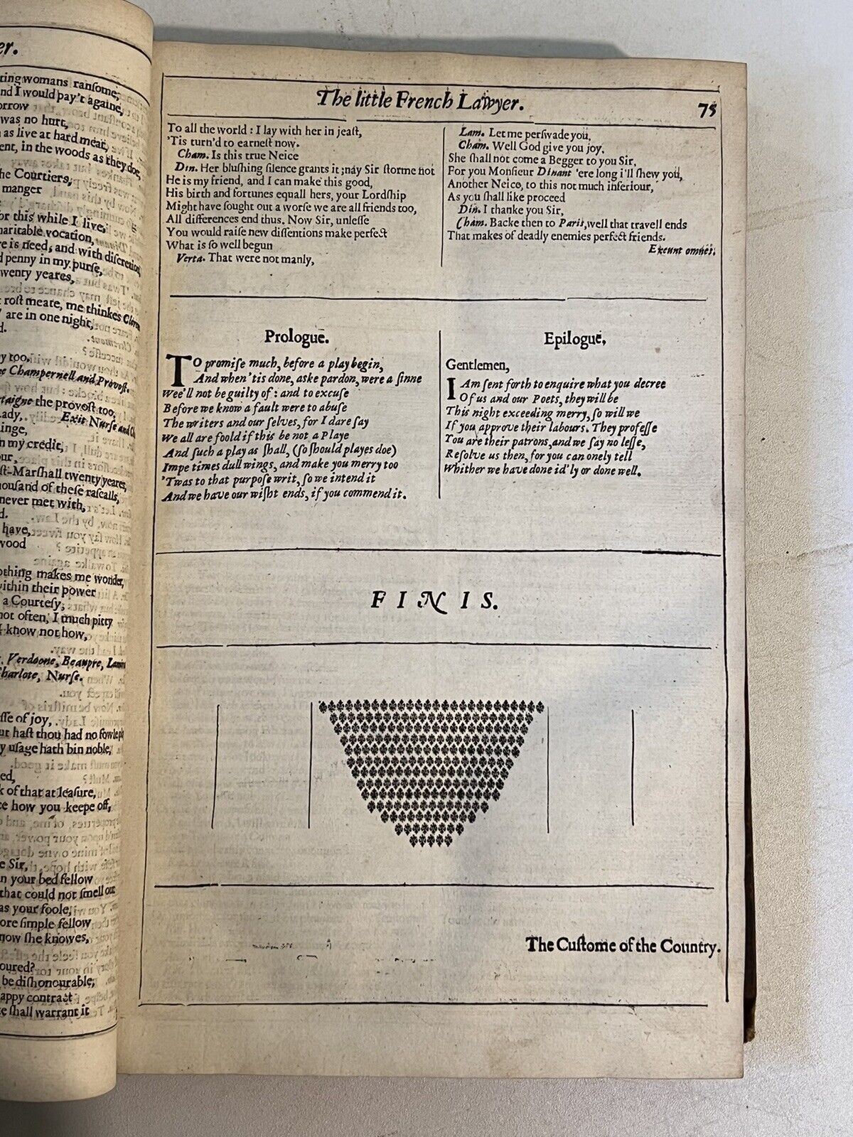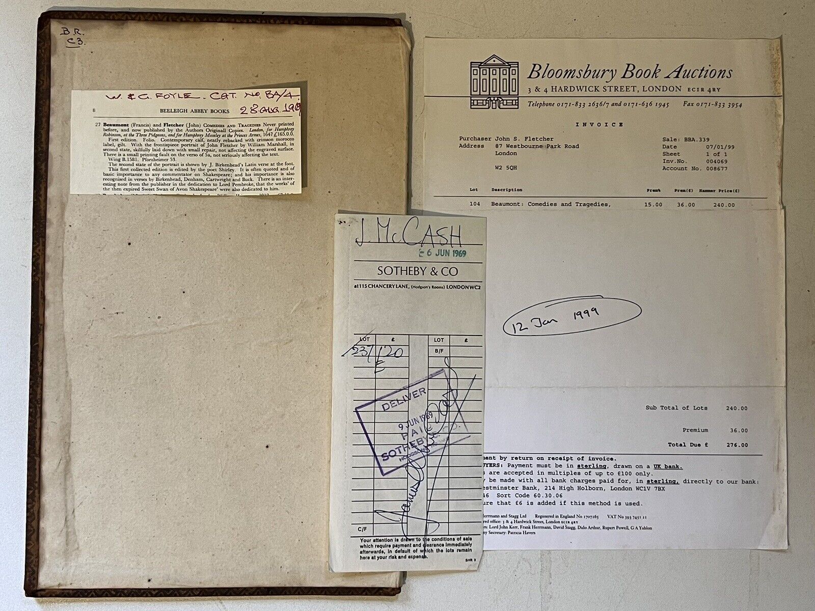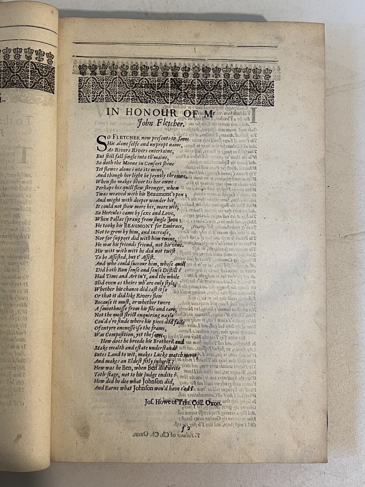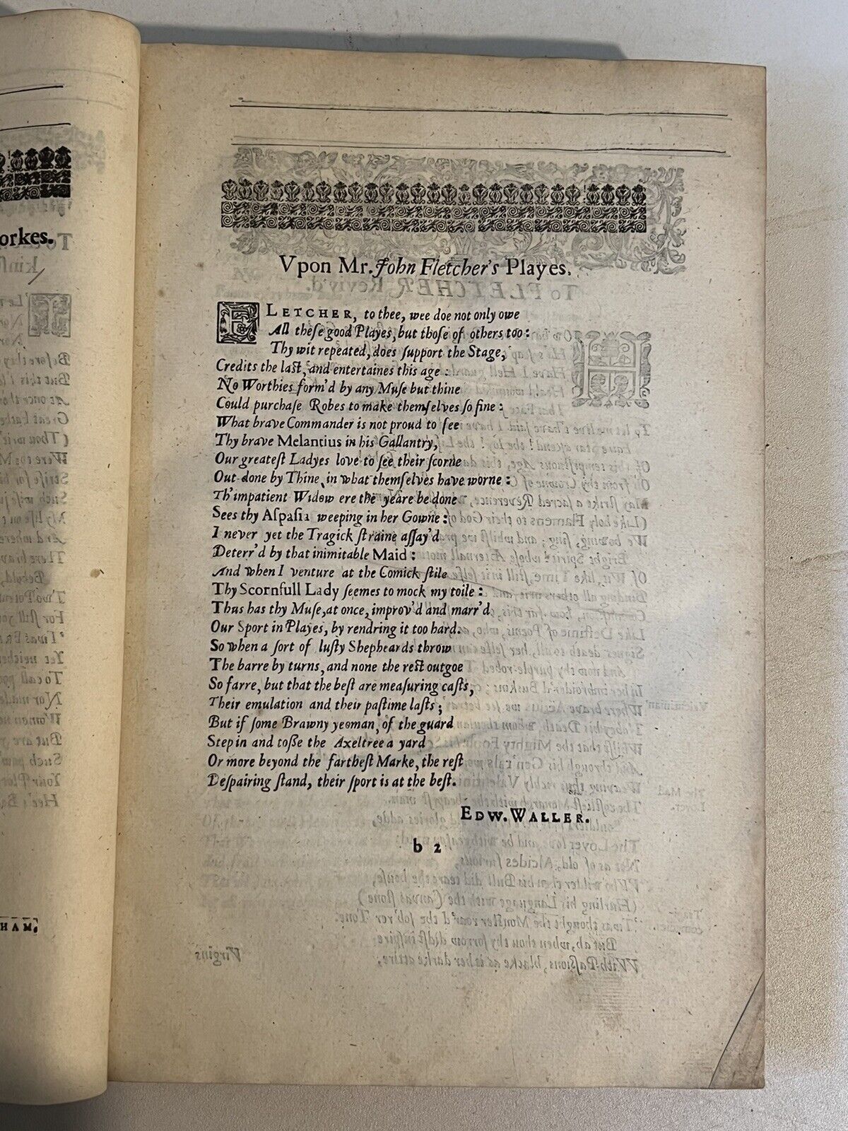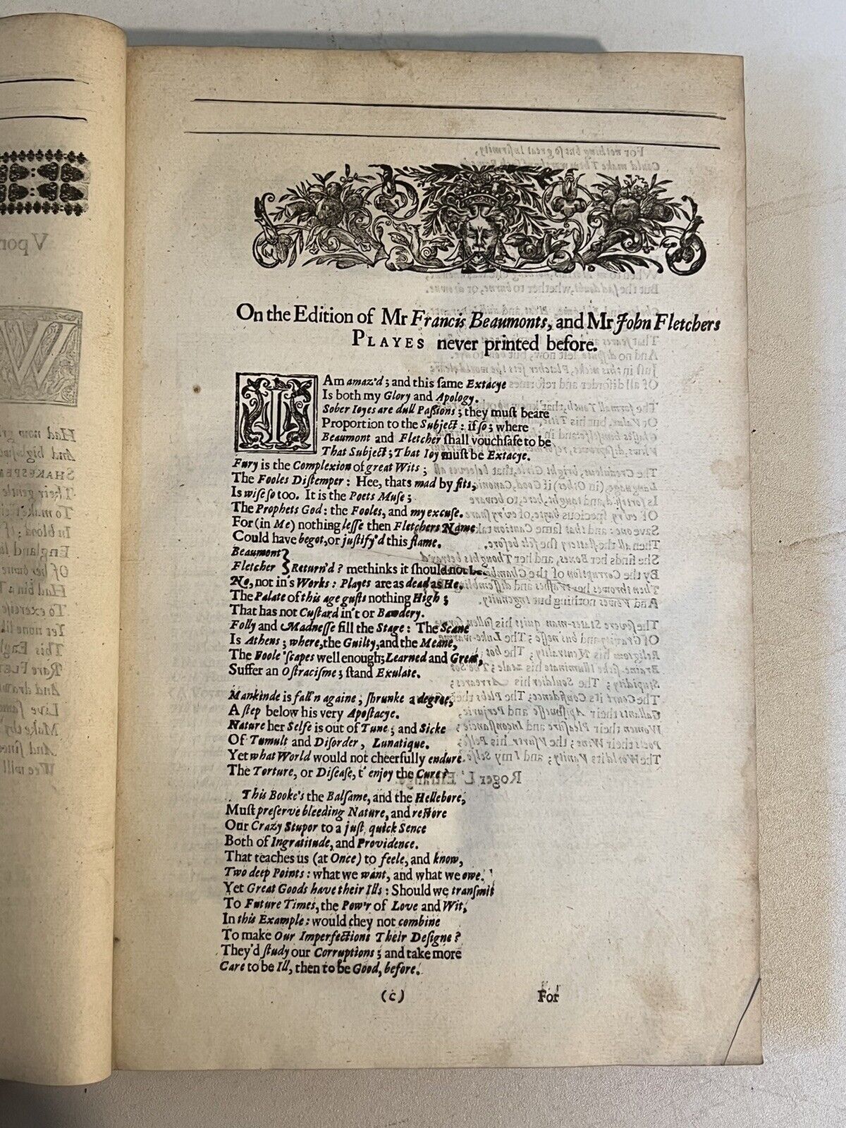 THE FIRST FOLIO OF BEAUMONT & FLETCHER, THE THIRD GREAT FOLIO OF ELIZABETHAN DRAMA AFTER BEN JONSON (1616) AND WILLIAM SHAKESPEARE (1623).
