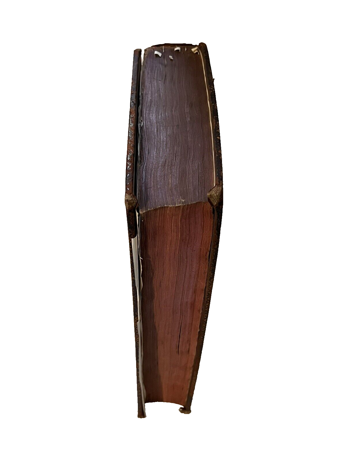 Near contemporary full calf binding, retaining its tooled black morocco label. Leather a little rubbed with some minor losses but generally very presentable. Rear joints starting with front board detached but present. Binding is generally secure and not cocked/warped. Page edges very good with top edge dulled as typical, contemporaneous red colouring. Lacks one textual leaf, 3X4, else textually collates as complete which is very scarce indeed for this edition.